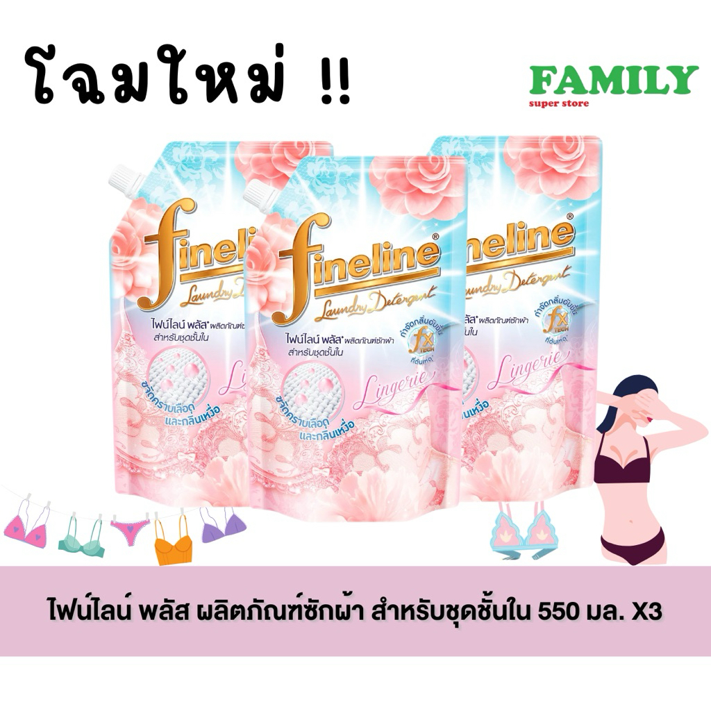 (3ถุง)* ไฟน์ไลน์ พลัส ผลิตภัณฑ์ซักผ้า สำหรับชุดชั้นใน 550 มล. x 3