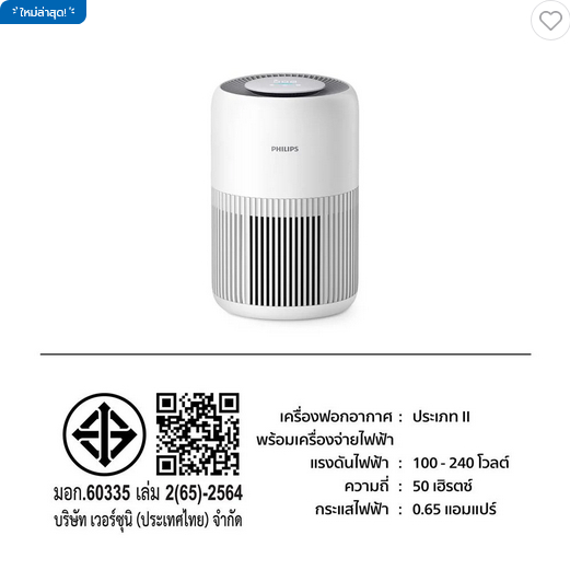 พร้อมส่ง!! กทม.มีส่งด่วนในวัน!! เครื่องฟอกอากาศ PHILIPS AC0920/10 65 ตารางเมตร ยับยั้งไวรัส กำจัดไวรัส