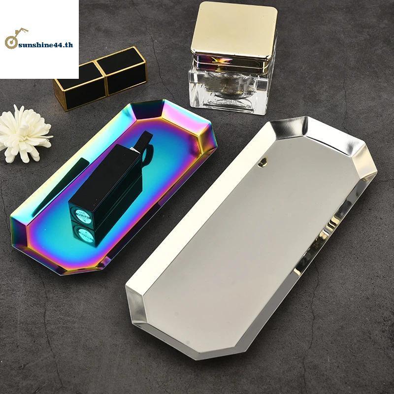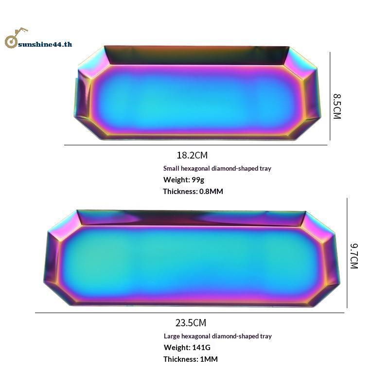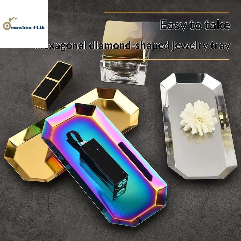 FOURSUN สแตนเลสหกเหลี่ยม Rhombus รูปร่างเครื่องสําอางตารางเครื่องประดับถาด Multi-Functional Home ถาดรับประทานอาหารคอนเทนเนอร์ TH