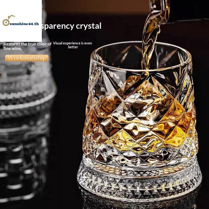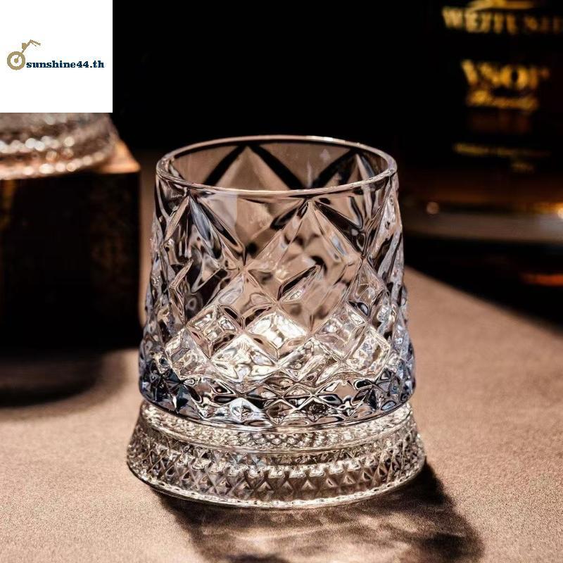 FOURSUN 2026 ใหม่แว่นตาหมุน Whisky แก้วฐานแก้ว 360 หมุนองศาคริสตัล Rum แก้วสําหรับค็อกเทลปาร์ตี้ดื่ม TH