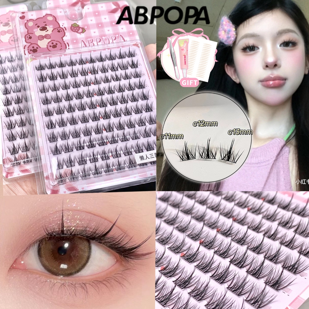 Abpopa ประณีตตาโตของขนตาปลอมความจุขนาดใหญ่ Lazy Trilogy Simple 100 Clusters