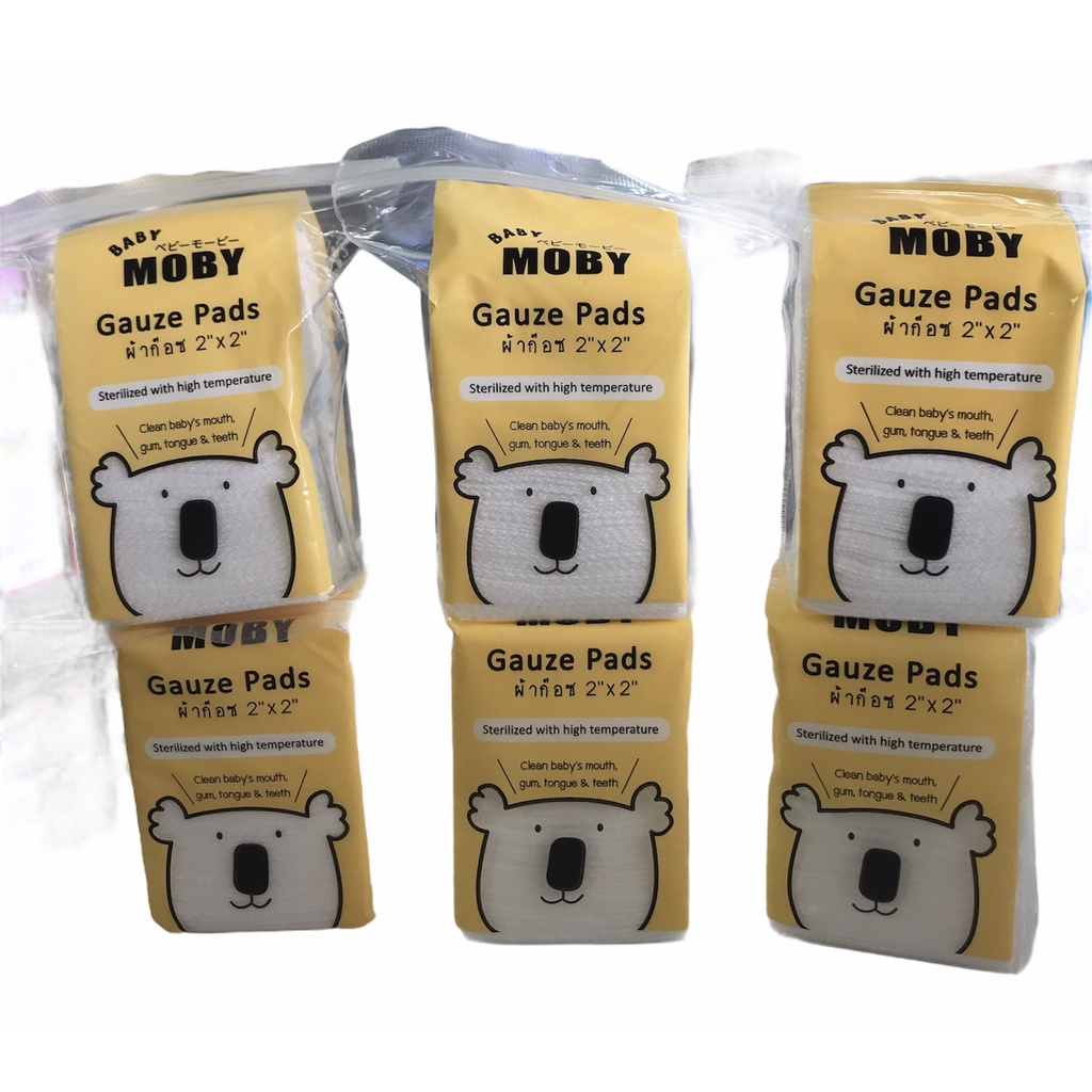 Moby ผ้าก๊อซฆ่าเชื้อด้วยความร้อน แพ็ค3ห่อ ห่อละ 50 แผ่น (3ห่อ)