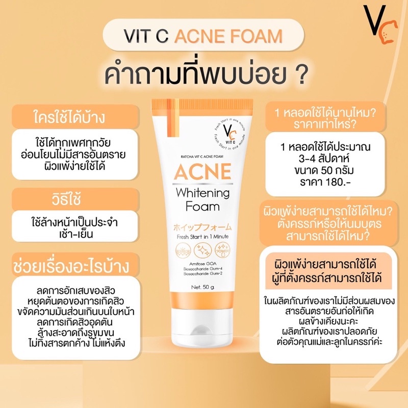 ใหม่ โฟมฉัตร VC Vit C Acne Foam วิตซี แอคเน่โฟม สูตรลดสิว