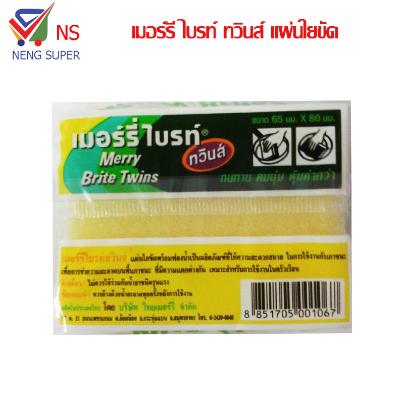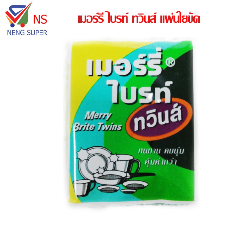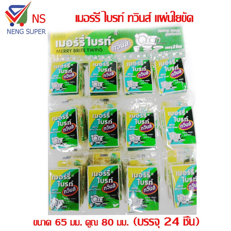 NS(ขายยกแพ็ค 24 ชิ้น) Merry Brite Twins เมอร์รี่ ไบรท์ ทวินส์ แผ่นใยขัด ทนทาน คมนุ่ม คุ้มค่ากว่า ขนาด 65 *80 มม.