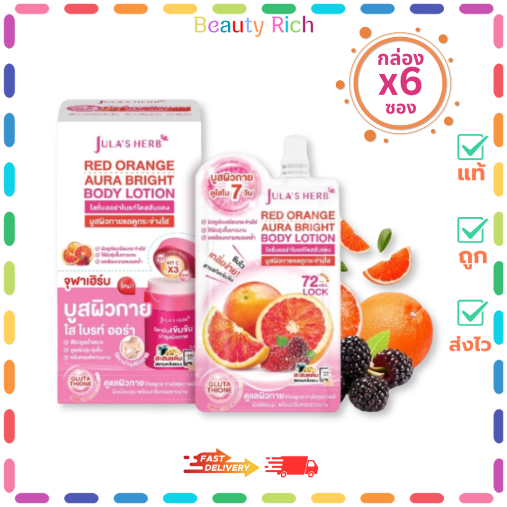 (กล่อง 6 ซอง) Jula's Herb Red Orange Aura Bright Body จุฬาเฮิร์บ เรด ออเร้น ออร่า ไบรท์ (40 g.)