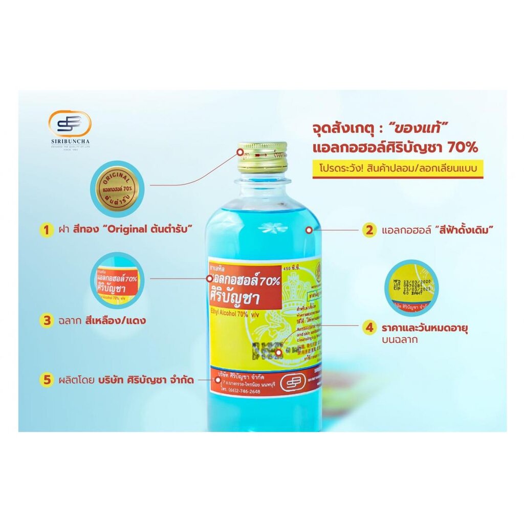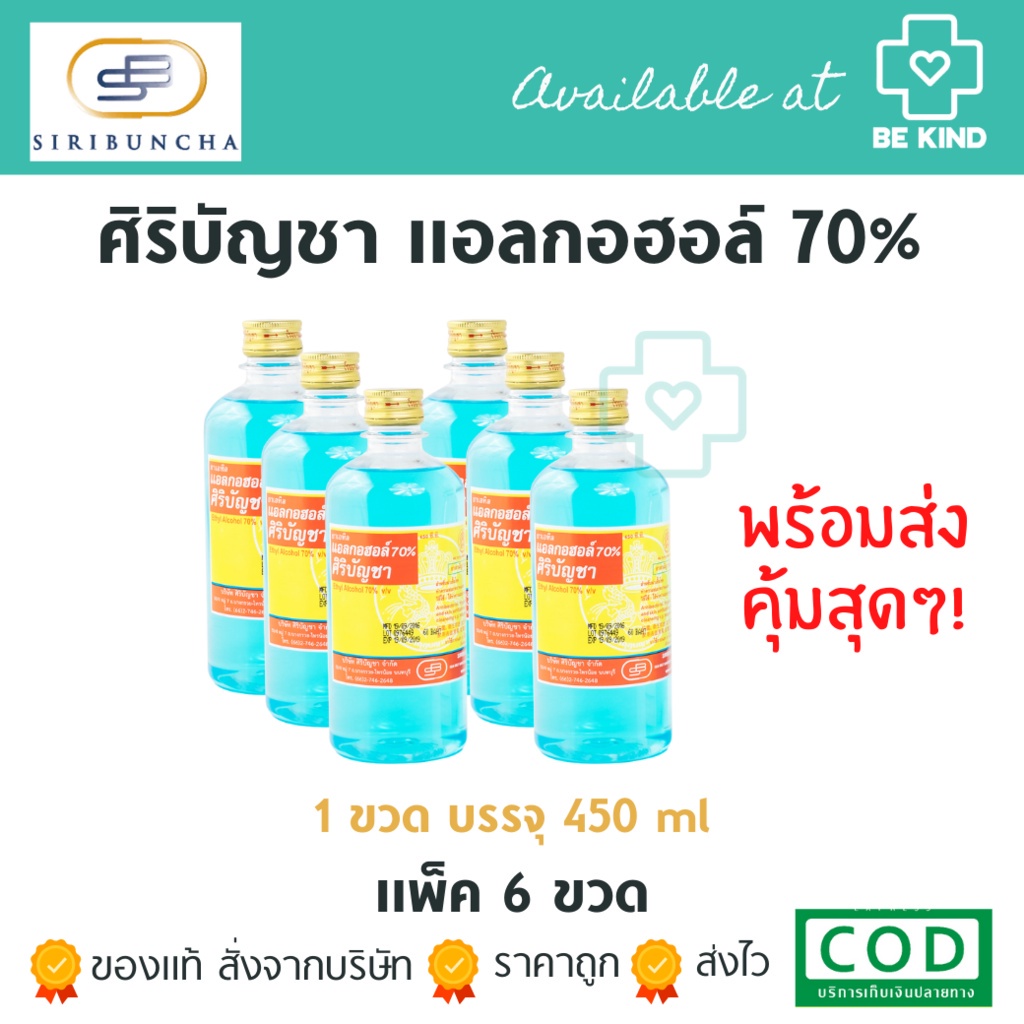 ศิริบัญชา แอลกอฮอล์ 70% ล้างแผล 450 มิลลิลิตร (แพ็ค 6 ขวด)