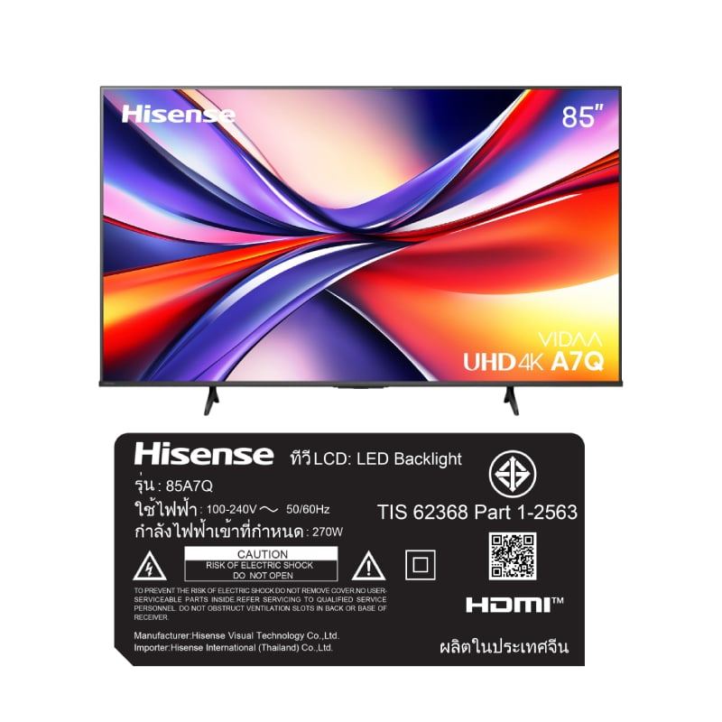 Hisense ทีวี A7Q สมาร์ททีวี 85 นิ้ว 4K VIDAA UHD LED รุ่น 85A7Q ปี 2025