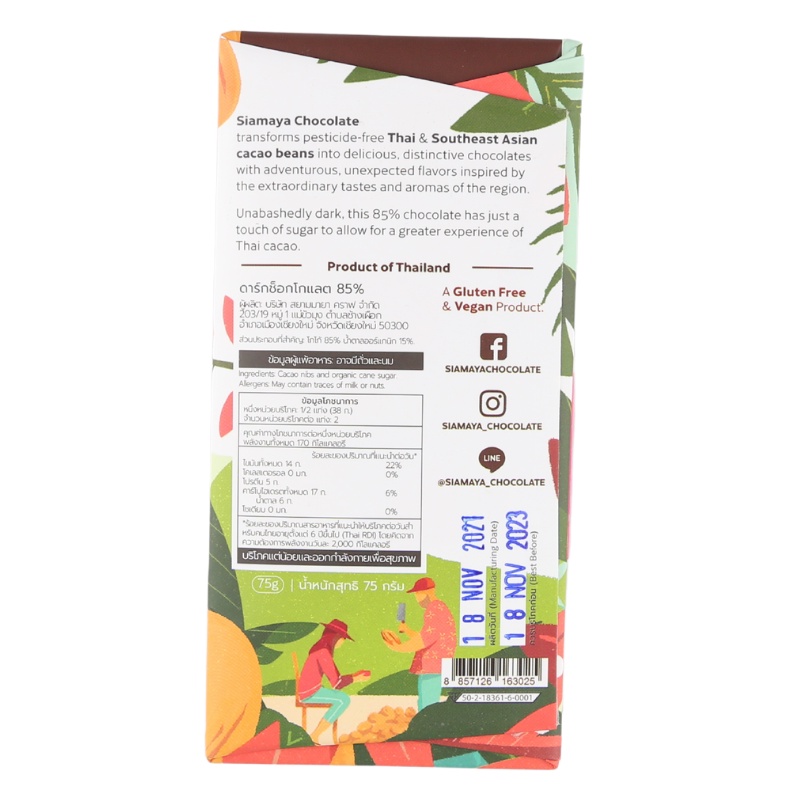 Siamaya Chocolate ดาร์คช็อกโกแลต 85% Dark Chocolate 85% (75g)