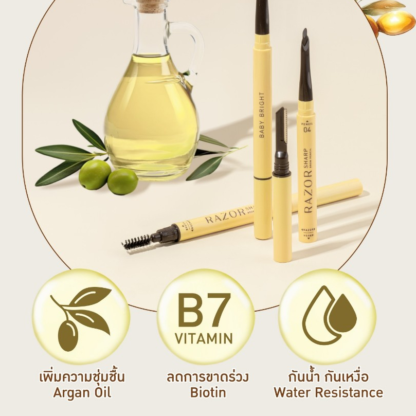 (ชิ้น) Baby Bright Razor Sharp Brow Pencil เบบี้ ไบรท์ เรเซอร์ ชาร์ป บราว เพนซิล (เลือกสี)