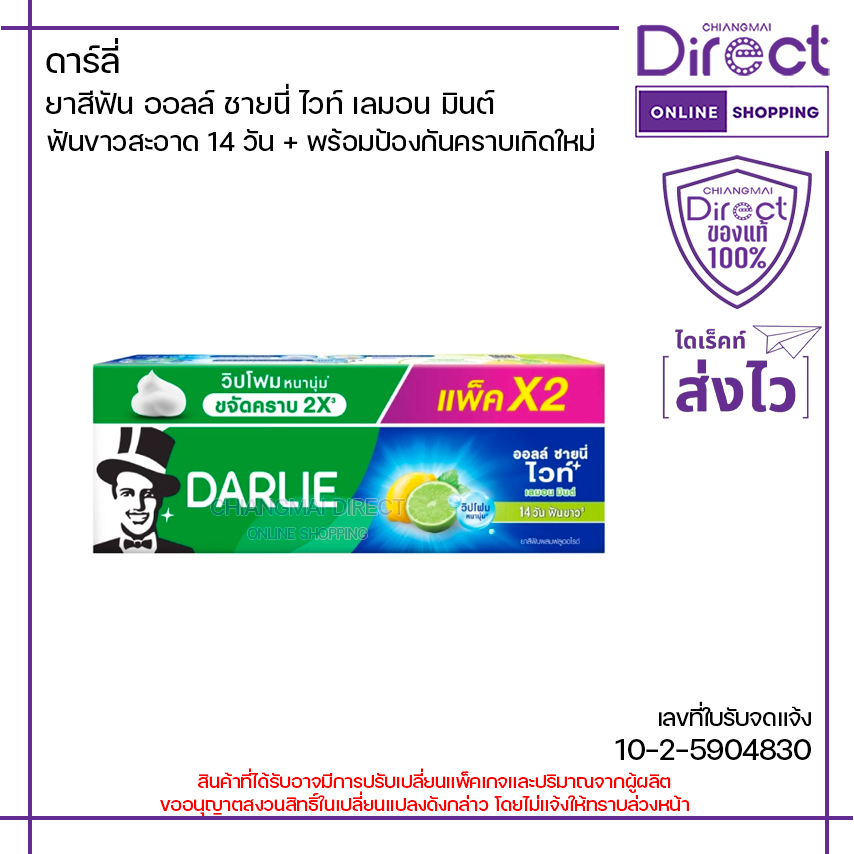 [แพ็คสุดคุ้ม] ดาร์ลี่ ยาสีฟัน ออลล์ ชายนี่ ไวท์ เลมอน มินต์ 140g.x2 | 04033