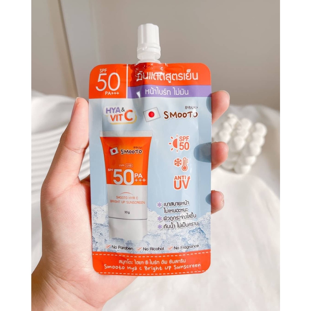 แบบซอง สมูทโตะ กันแดด ไฮยาสูตรเย็น SPF50 Pa+++ ครีมกันแดดตัว กันแดดหน้า Smooto Hya & Vit C 30g.