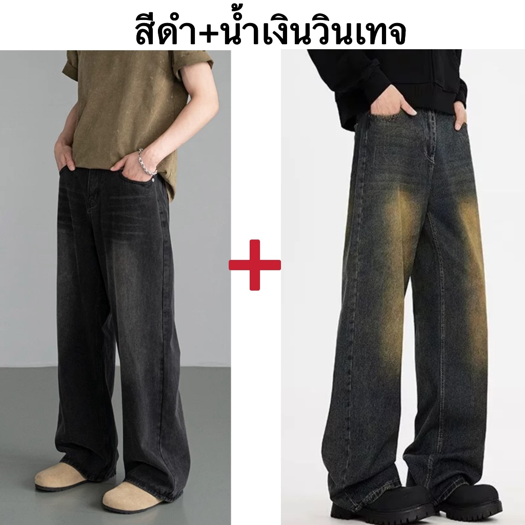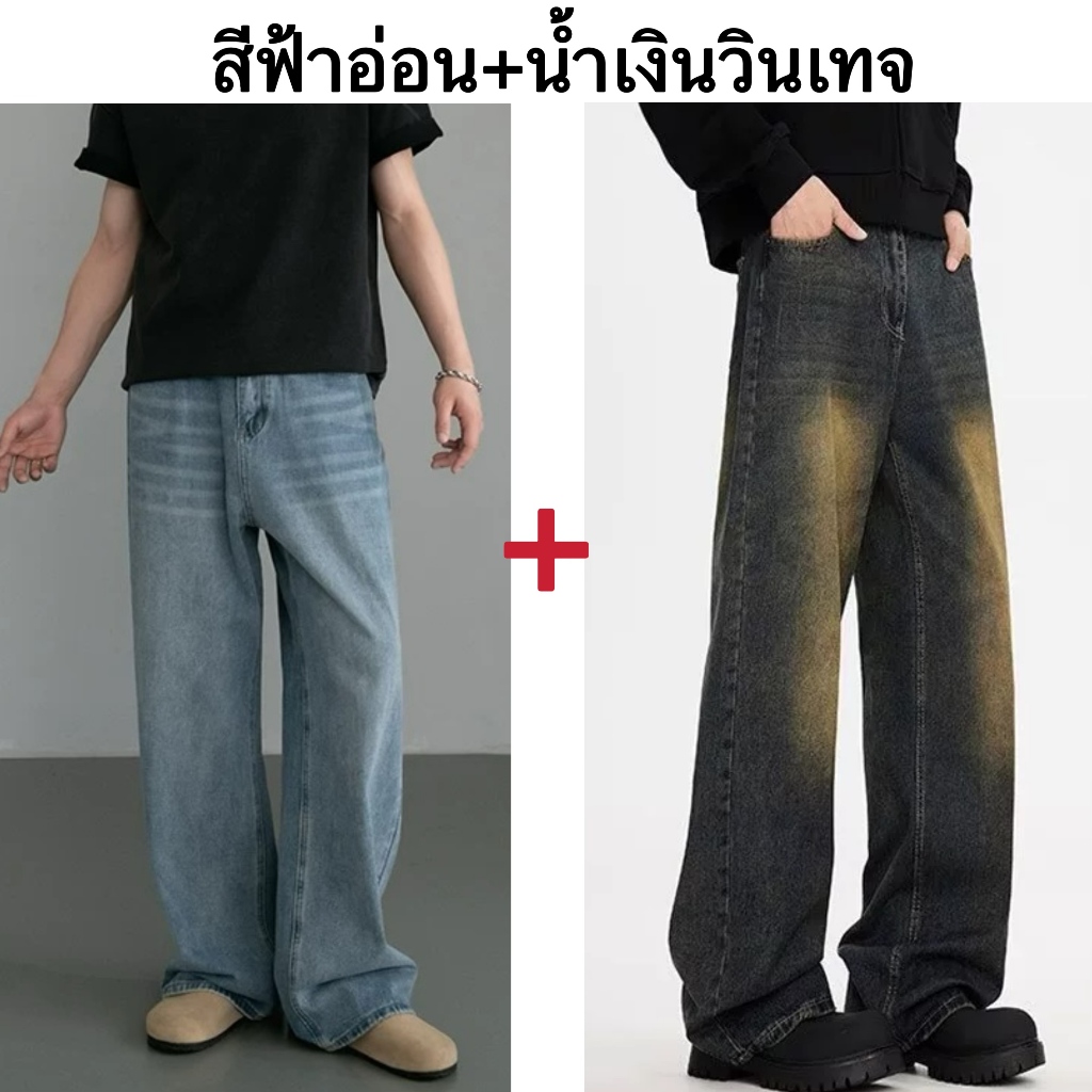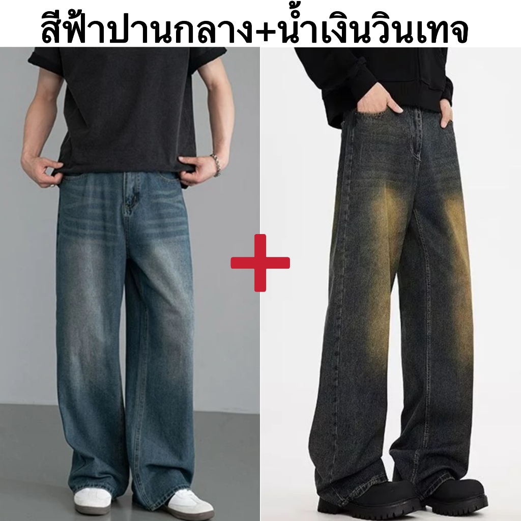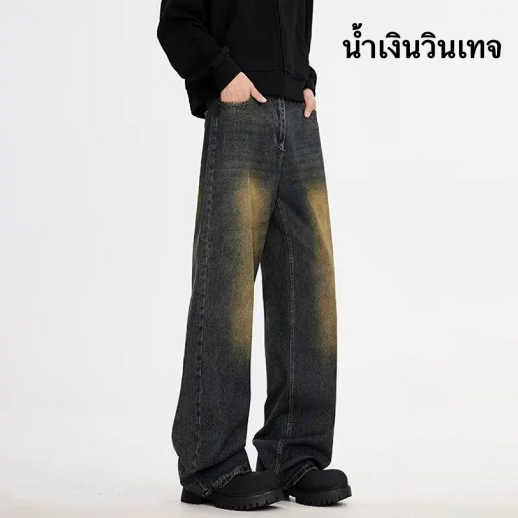 แฟชั่นกางเกงยีนส์ผู้ชาย ขากระบอกใหญ่ ทรงตรง ทรงหลวม สไตล์อเมริกันวินเทจ สําหรับผู้ชาย สุดฮิตแฟชั่น