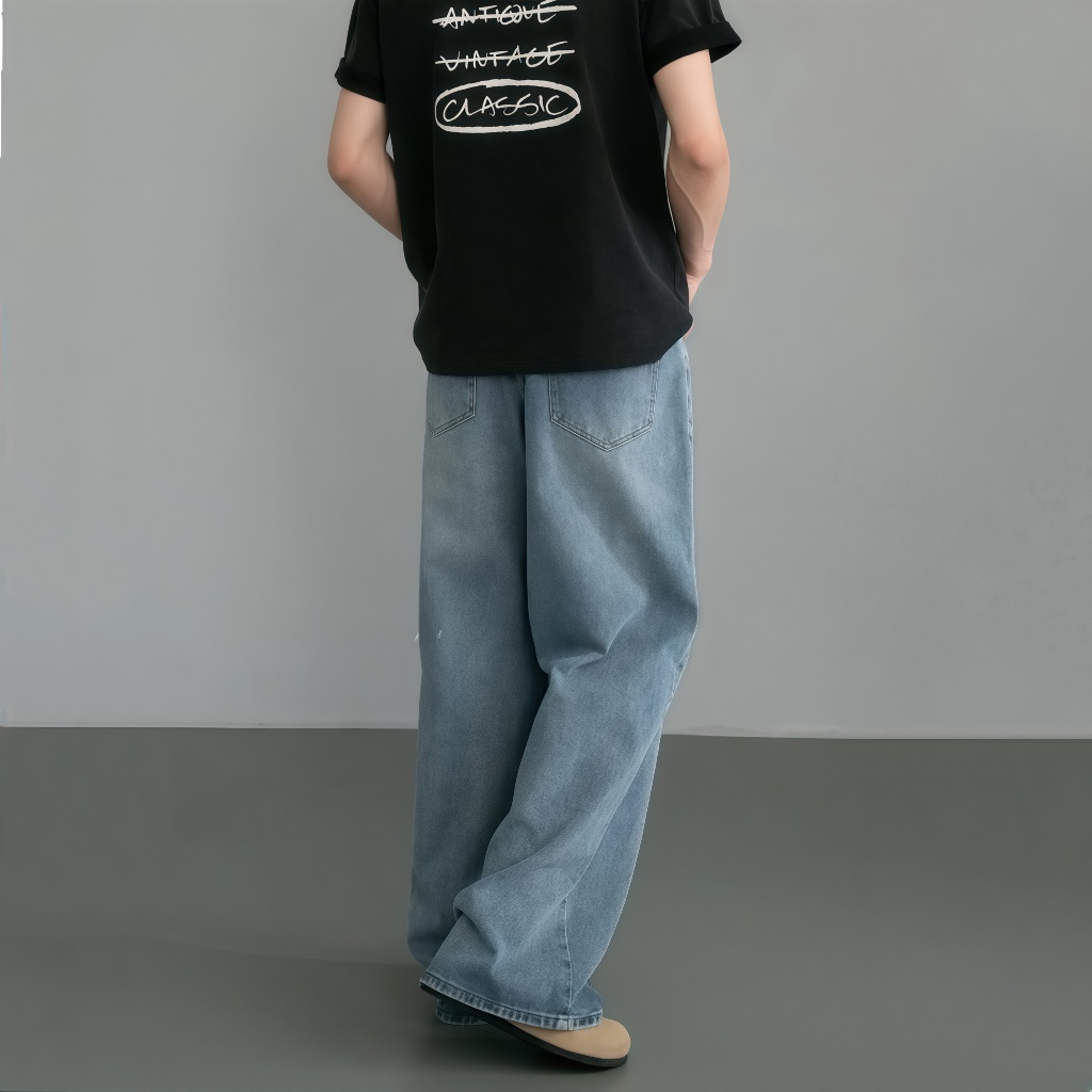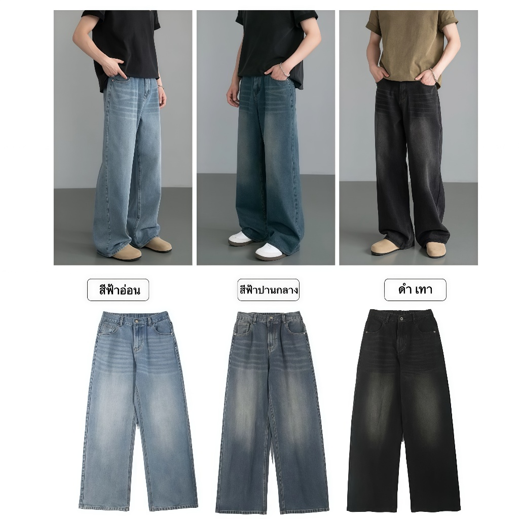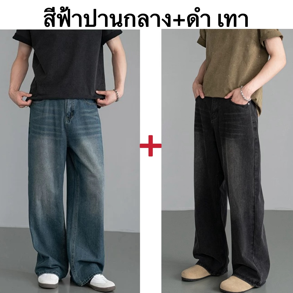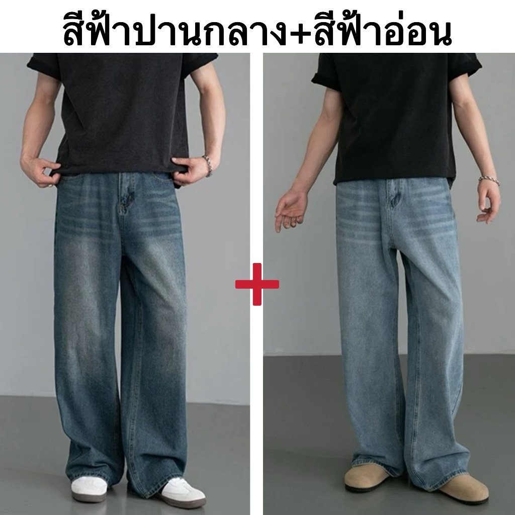 แฟชั่นกางเกงยีนส์ผู้ชาย ขากระบอกใหญ่ ทรงตรง ทรงหลวม สไตล์อเมริกันวินเทจ สําหรับผู้ชาย สุดฮิตแฟชั่น