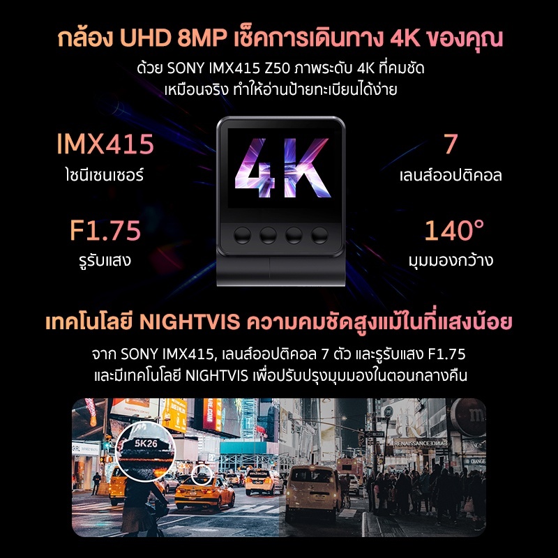 DDPAI Z50 กล้องติดรถยนต์หน้า (4K 2160P, มุมมอง 140°, F1.75) รับประกันศูนย์ไทย 1 ปี