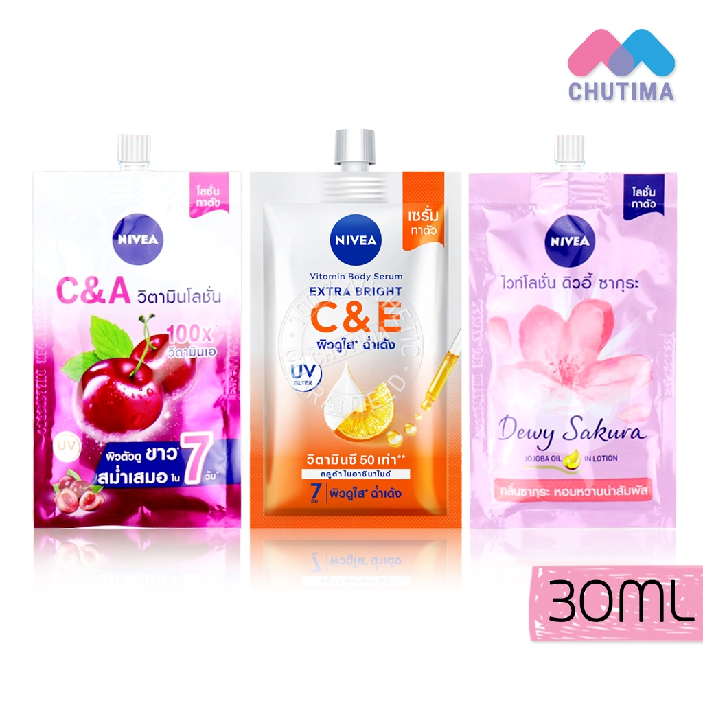 ครีมทาผิว โลชั่น นีเวีย C&A วิตามิน /C&E วิตามิน/ไวท์โลชั่น ดิวอี้ ซากุระ Nivea Vitamin Lotion 30 ml.
