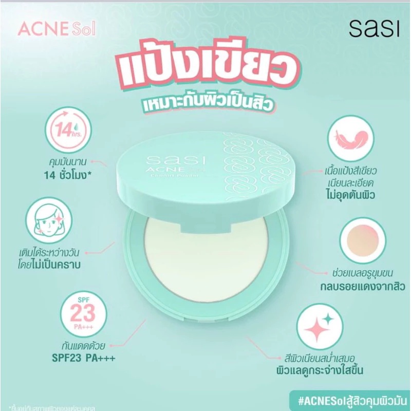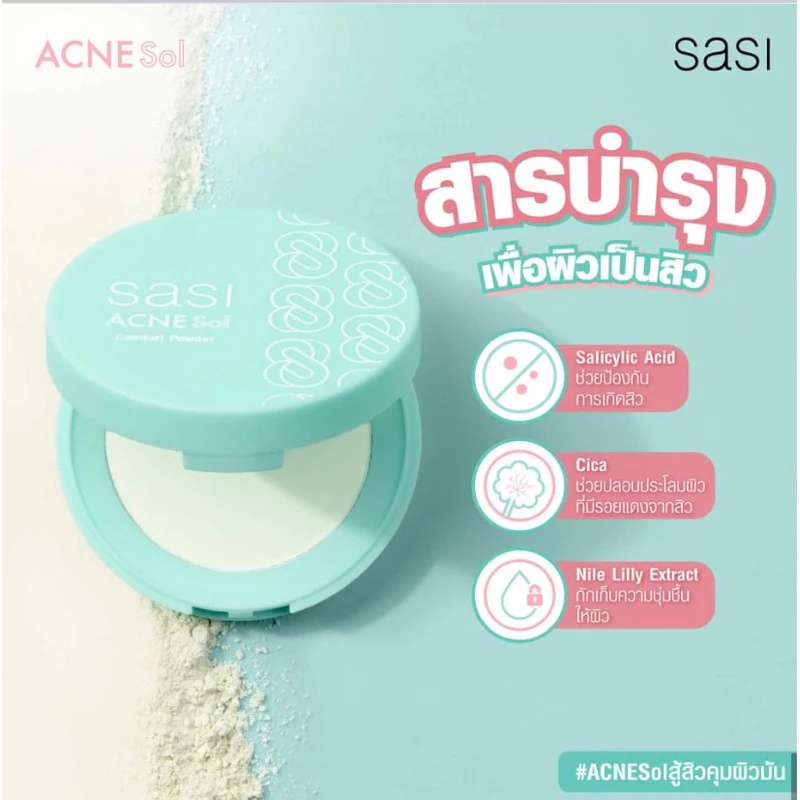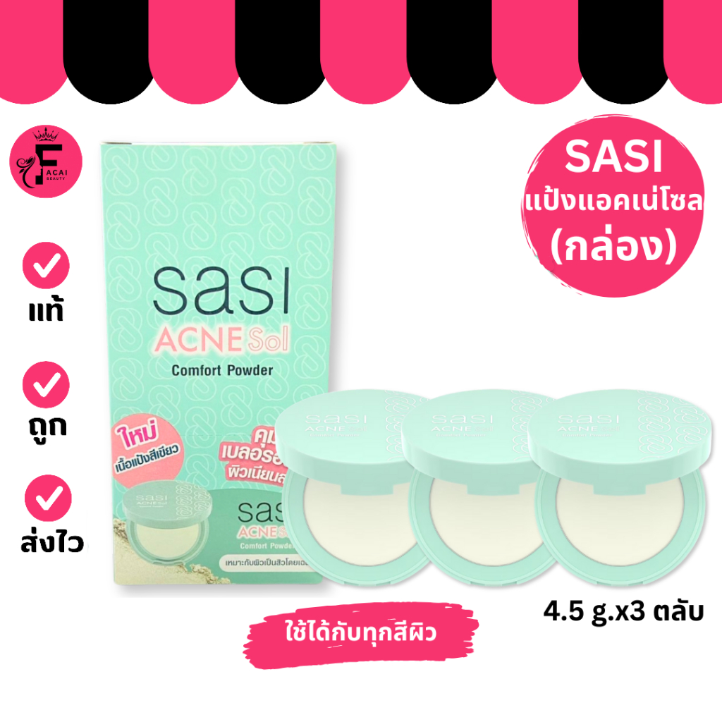 (กล่อง 3 ตลับ) sasi แป้งแอคเน่โซล (สำหรับผิวเป็นสิว) คอมฟอร์ท พาวเดอร์ (4.5 g.)