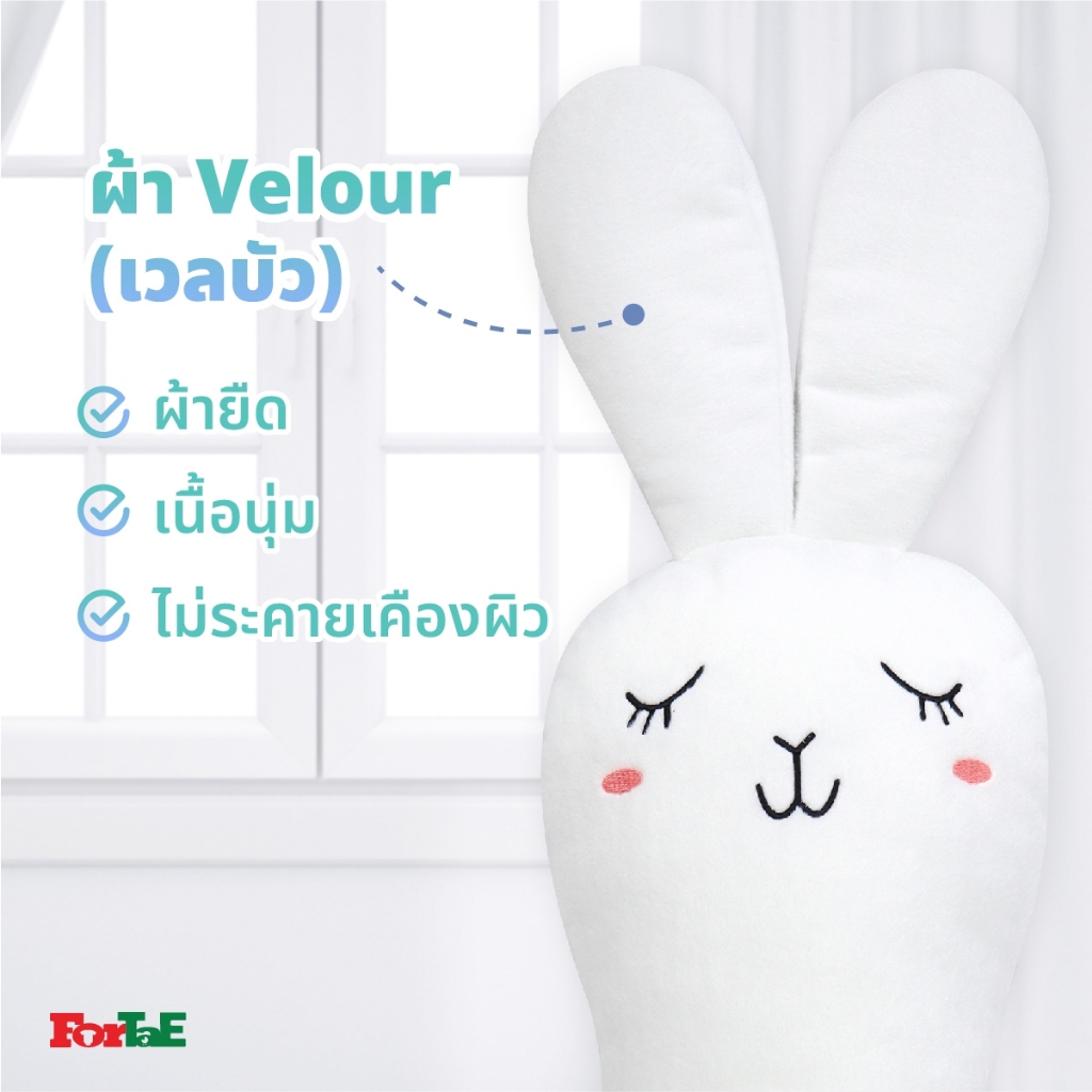 ForTae(ฟอร์เต้) หมอนข้างเด็ก หมอนข้างตุ๊กตากระต่าย ผ้าเวลบัว กันไรฝุ่น รุ่น Bunny