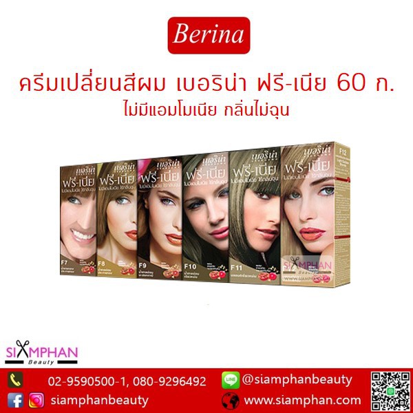 ครีมเปลี่ยนสีผม เบอริน่า ฟรีเนีย 60 กรัม (ไม่มีแอมโมเนีย กลิ่นไม่ฉุน)