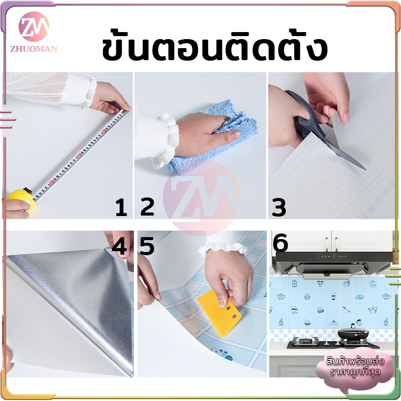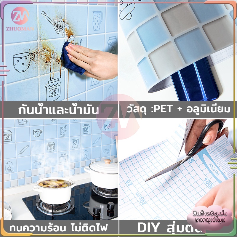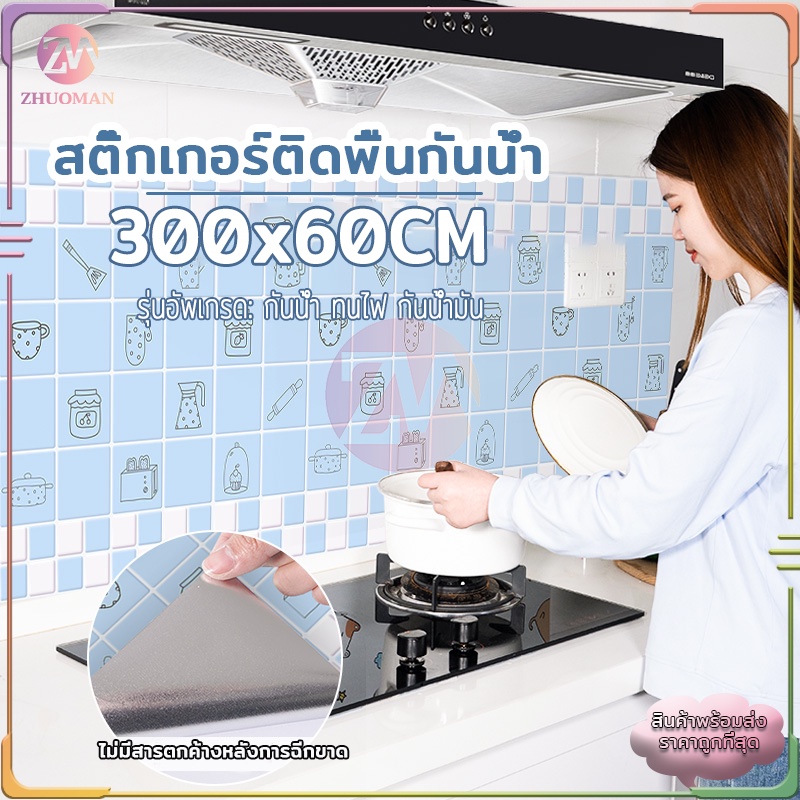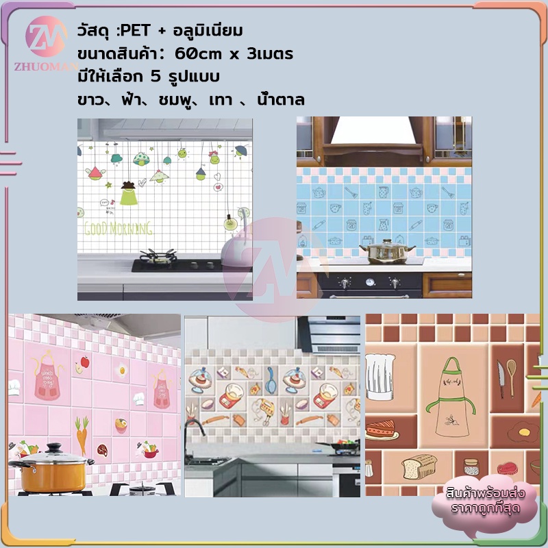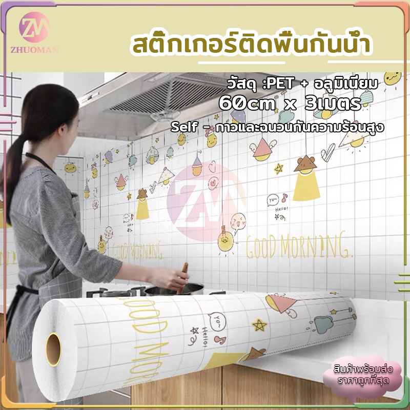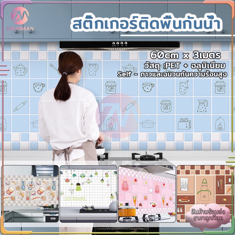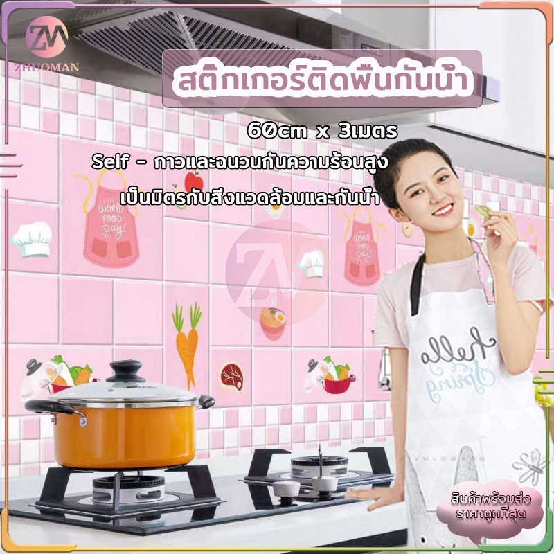 สติ๊กเกอร์ติดห้องครัว วอลเปเปอร์ติดผนัง 60cm*3เมตร สติ๊กเกอร์กันน้ำมันกระเด็น วอลเปเปอร์ กันน้ำ ลอกออกไม่ทิ้งกาว