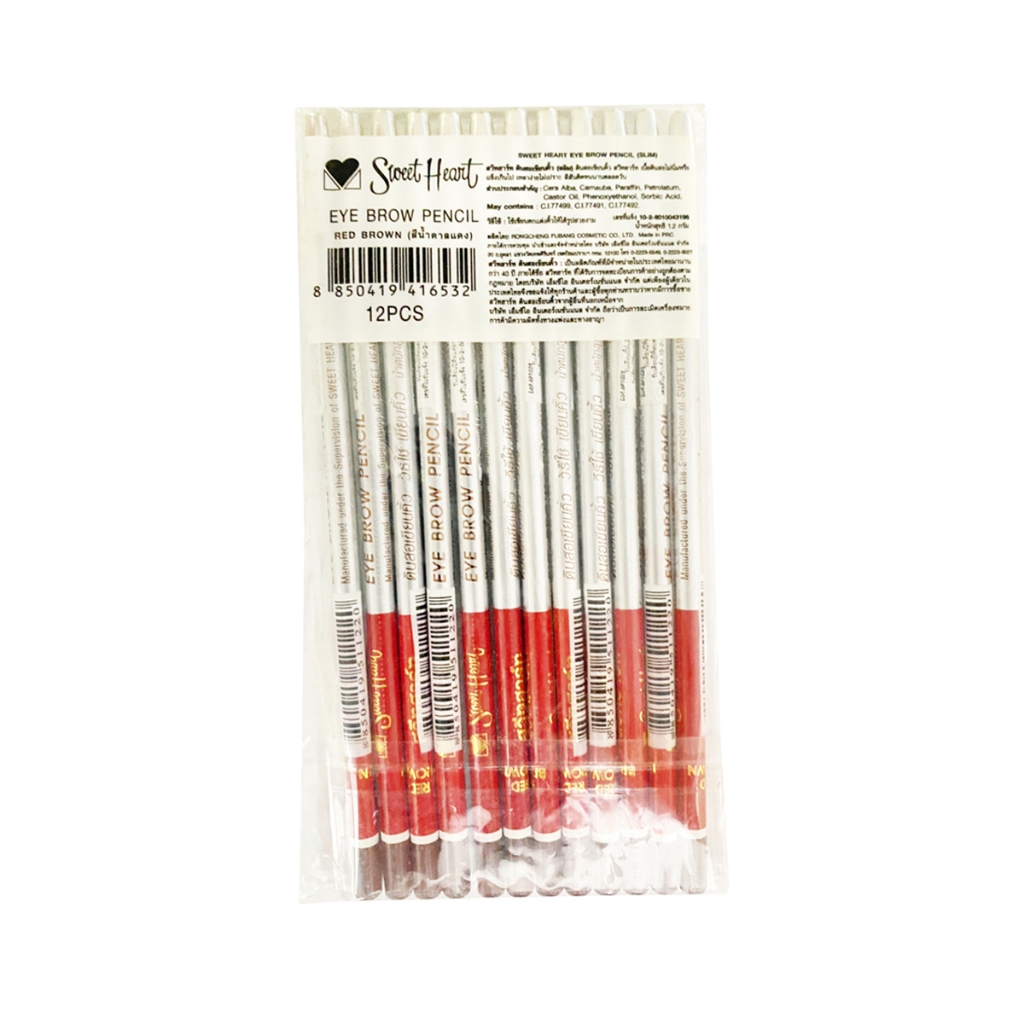 SWEETHEART สวีทฮาร์ท ดินสอเขียนคิ้วแท่งผอม Sweet Heart Eyebrow Pencil (1แพ็ค 12แท่ง / มีให้เลือก 3 สี)