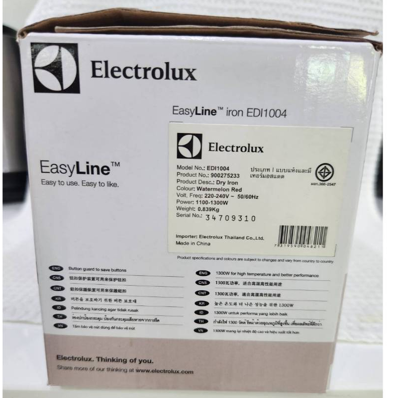 ELECTROLUX เตารีดแห้ง รุ่น EDI1004 สีแดง MC
