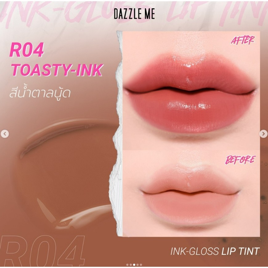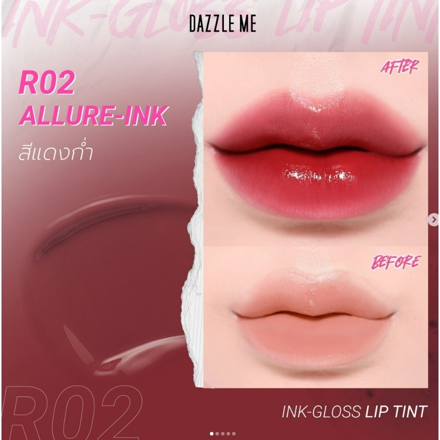 DAZZLE ME Ink-Gloss Lip Tint ลิปกลอสทินท์ ปากฉ่ำวาว ติดทน จูบไม่หลุด กันน้ำ บางเบา ปริมาณ 2.5 g.