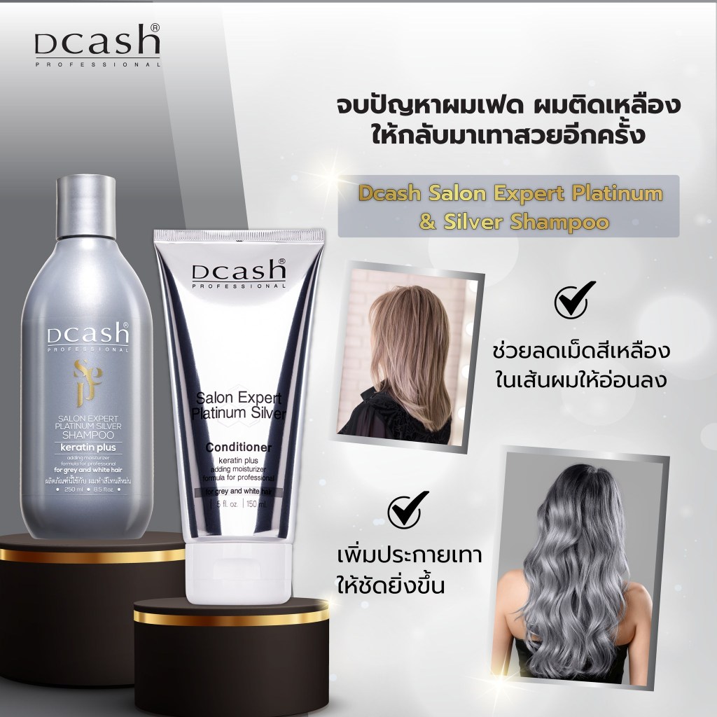 Dcash ดีแคช โปรเฟสชันนอล ซาลอน เอ็กซ์เปิร์ท แพลตตินั่ม ซิลเวอร์ (สีบลอด์นเงิน) แชมพู 250มล. / คอนดิชันเนอร์ 150 มล.