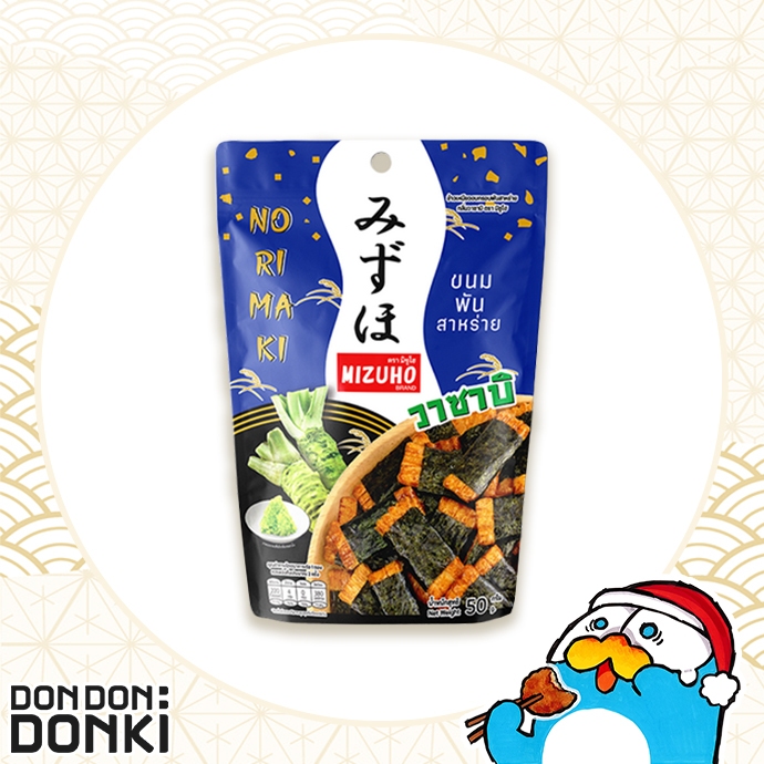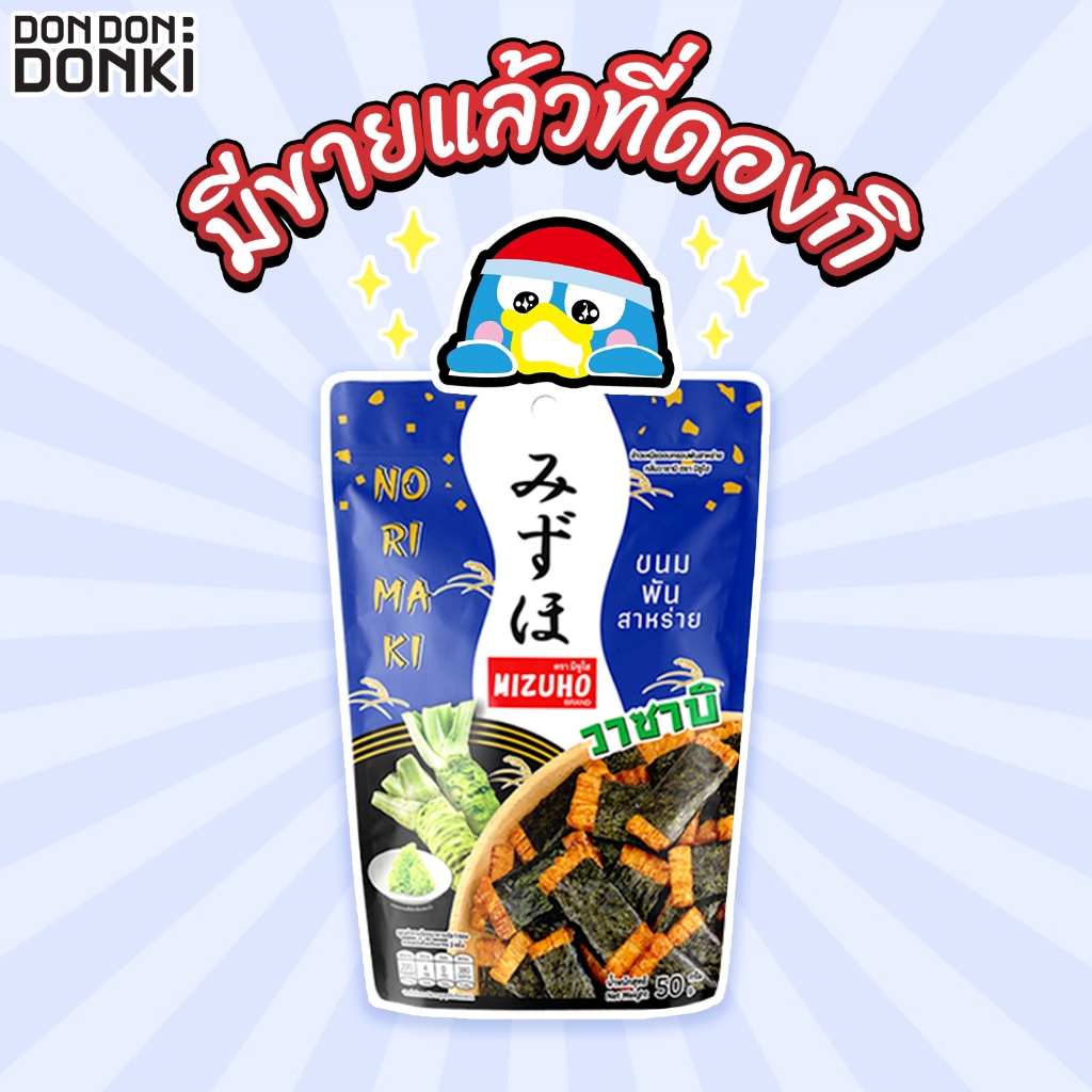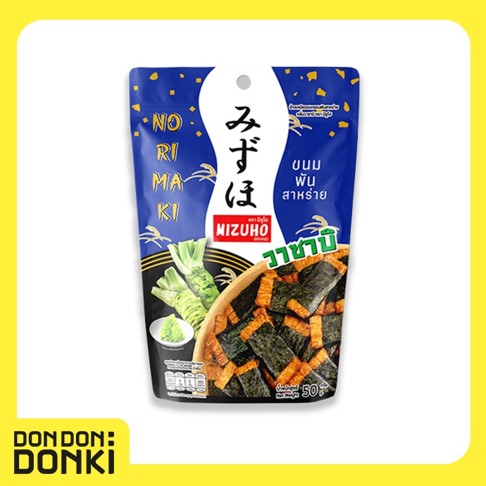 Mizuho Norimaki Wasabi.มิซูโฮ ขนมข้าวอบกรอบ รสวาซาบิ (ซองสีน้ำเงิน)