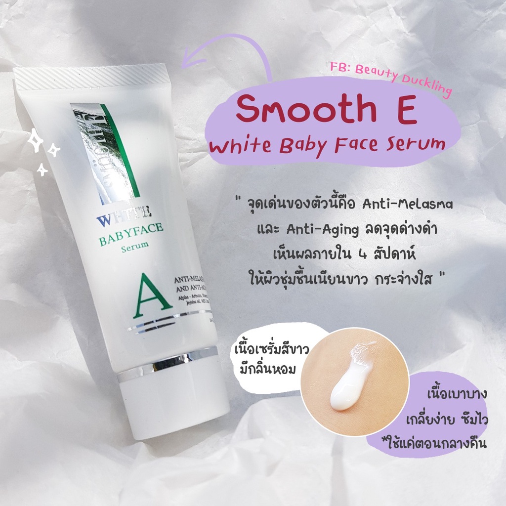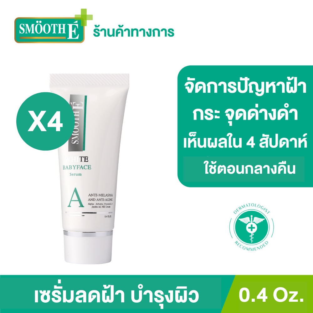 [แพ็ค 4] Smooth E Anti-Melasma White Babyface Serum 0.4 Oz. ลดฝ้า กระ จุดด่างดำ ผิวขาวเนียน ไวท์เทนนิ่ง