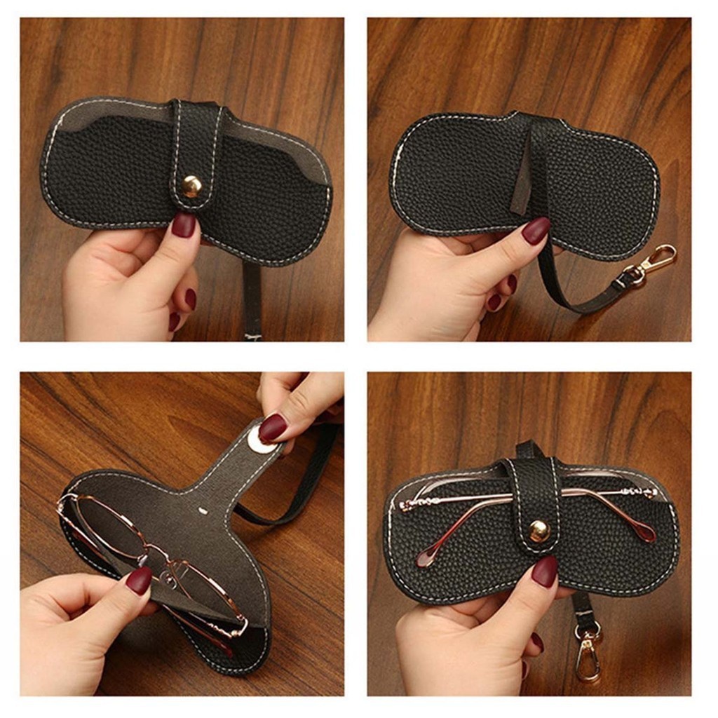 กระเป๋าแว่นตา ซองแว่นตา ซองแว่นตาแบบหนัง ที่เก็บแว่นกันแดด แบบตะขอ สไตล์มินิมอล พกพาสะดวก