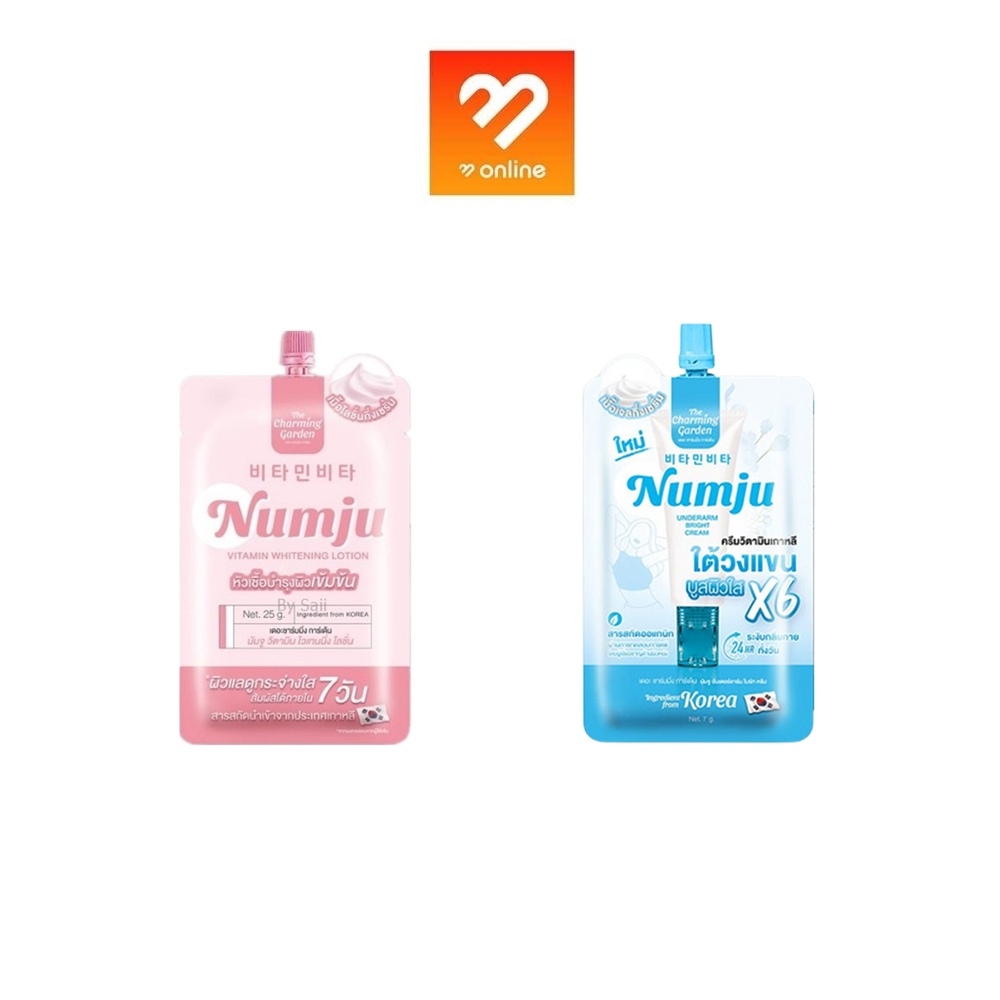 นัมจู แบบซอง Numju ขนาดพกพา 25g. ครีมบำรุงผิวกาย ครีมทาผิว วิตามิน ไวเทนนิ่ง โลชั่น ข้อศอกดำ หัวเข ่าด้าน ขาหนีบดำ