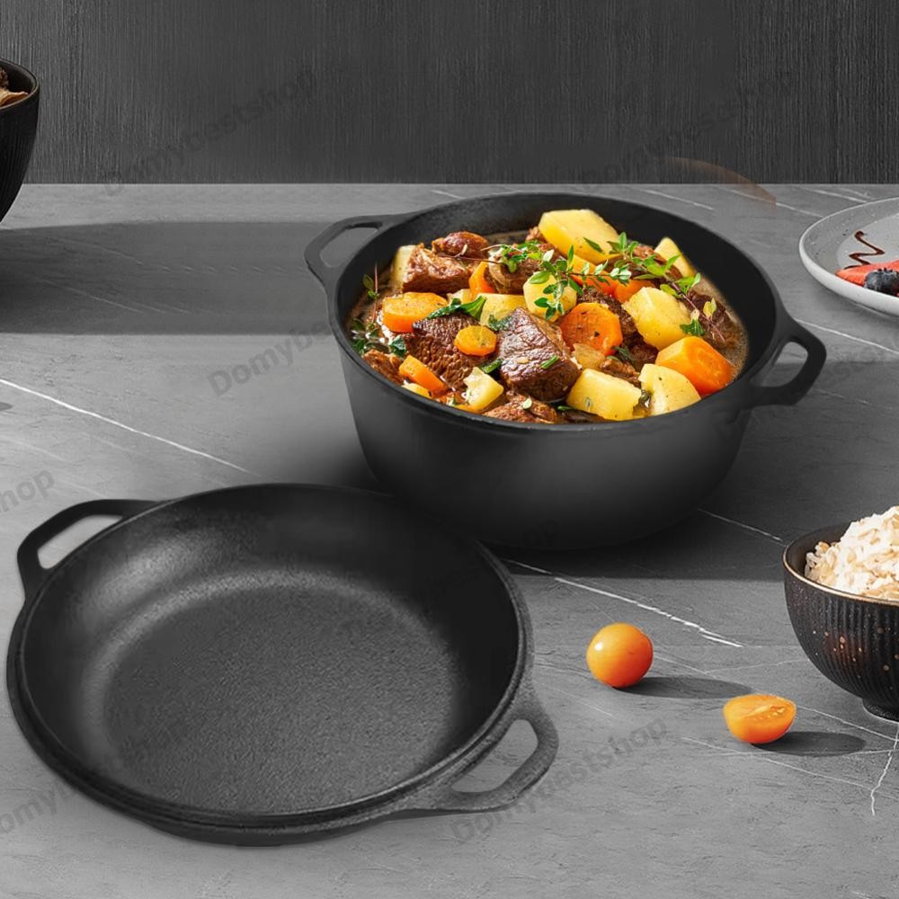 🚚 2in1 เตาอบดัตช์เหล็กหล่อพร้อมฝาปิด Skillet เตาอบดัตช์หม้อ ชุดเครื่องครัวสําหรับอบขนมปัง Camping BBQ