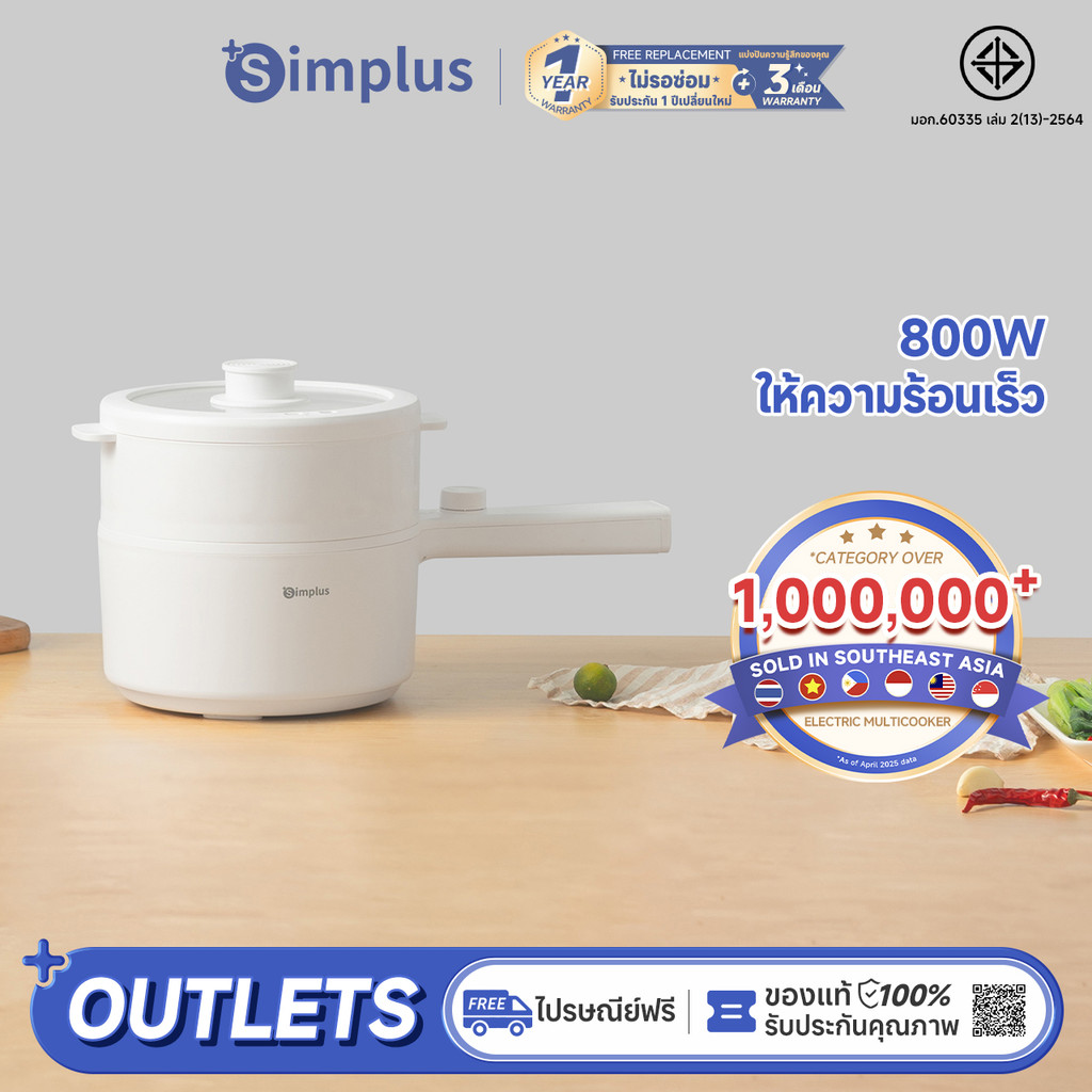 Simplus หม้อไฟฟ้าอเนกประสงค์ 2 ลิตร เหมาะสำหรับ 2-4 คน DZGH006/DZGH002/LG-302