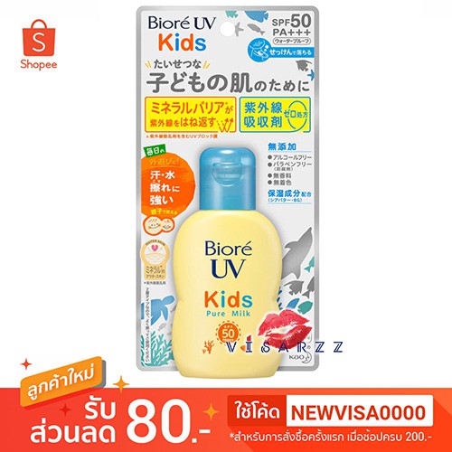 Biore UV Kids Pure Milk SPF50+ PA+++ 70mL กันแดดน้ำนมสูตรสำหรับเด็ก เป็นเจลสูตรน้ำนมอ่อน
