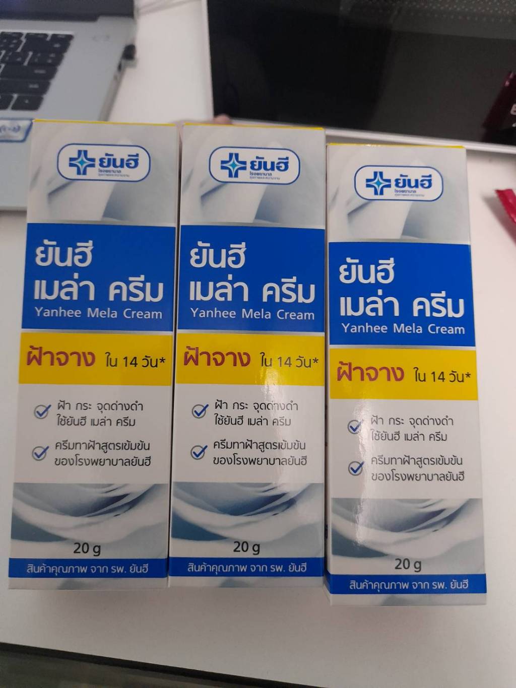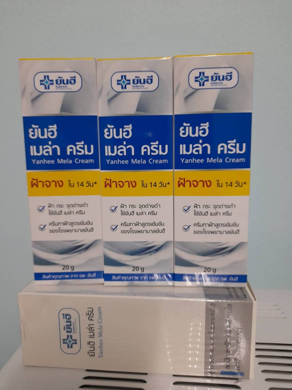 สุดคุ้ม ยันฮีเมล่าครีม 20 กรัม(แพ็ค 3 กล่อง)ลดฝ้า กระ ลดจุดด่างดำ รักษาฝ้าและช่วยฟื้นฟูผิวหมองคล้ำ