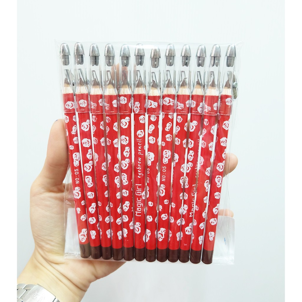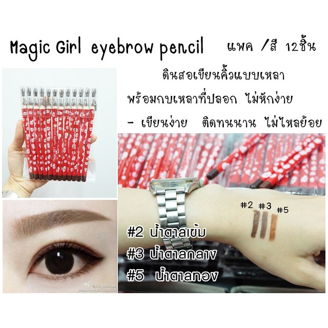 1ชิ้น (กันน้ำ) ดินสอเขียนคิ้ว กุหลาบสั้น Magic Girl eyebrow pencil.