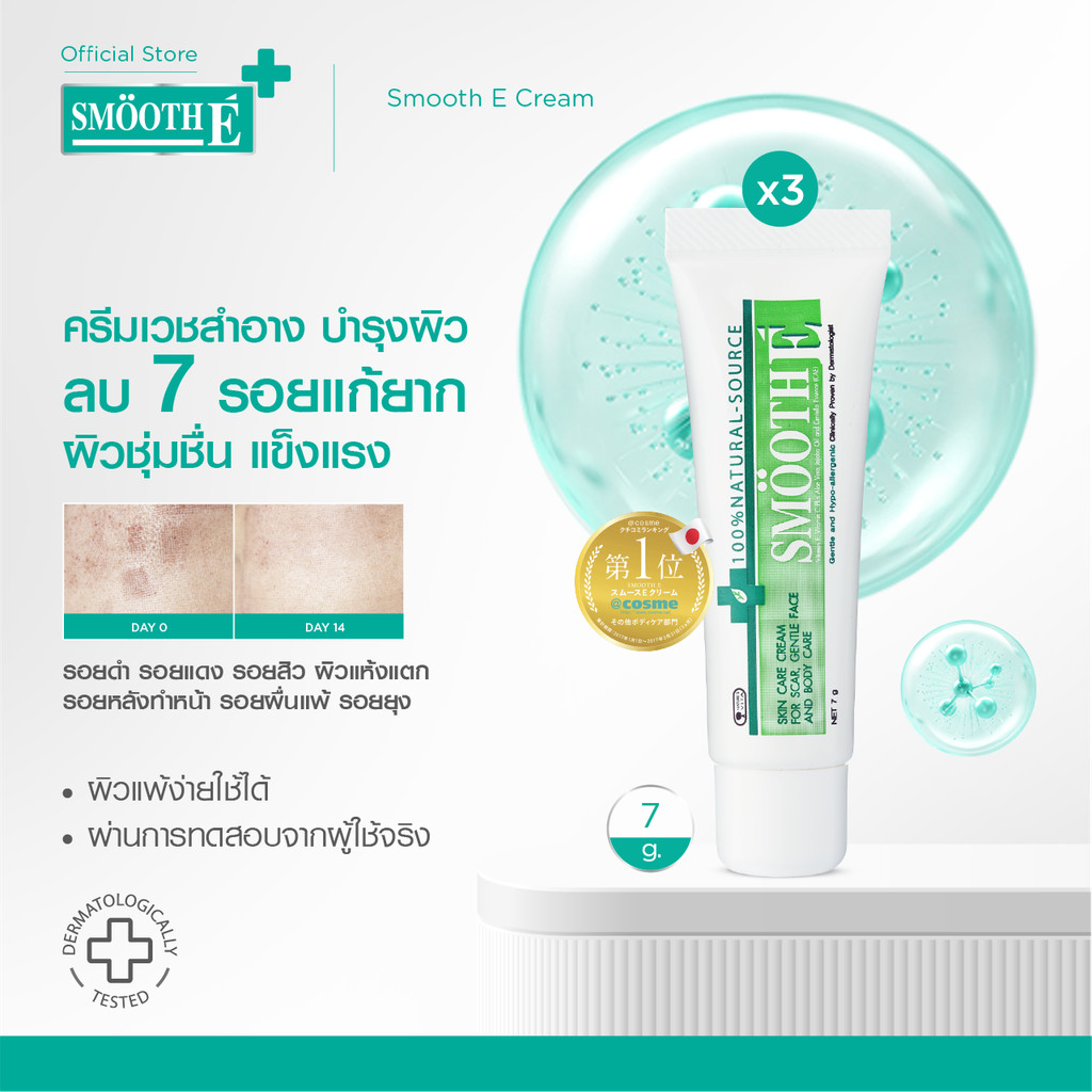 [แพ็ค3สุดคุ้ม] Smooth E Cream 7g. สมูท อี ครีมลดเลือนริ้วรอย ผื่นแดง รอยหัตถการ รอยแผลเป็น จุดดำจากสิว ผิวชุ่มชื้น