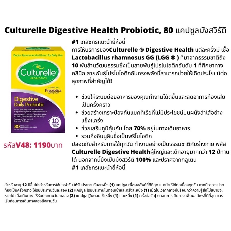 Culturelle Digestive Health Probiotic, 80 แคปซูลมังสวิรัติ