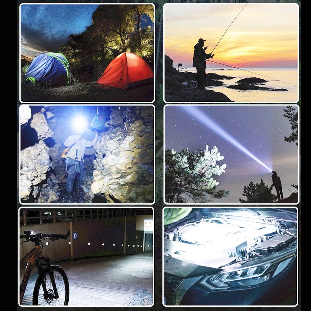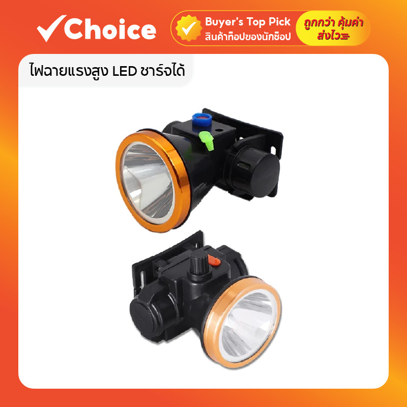 ไฟฉายแรงสูง LED ชาร์จได้ กันน้ำ หรี่แสงไฟได้ ไฟฉายเดินป่า ไฟฉายคาดหัว แบตลิเธียมไอออน