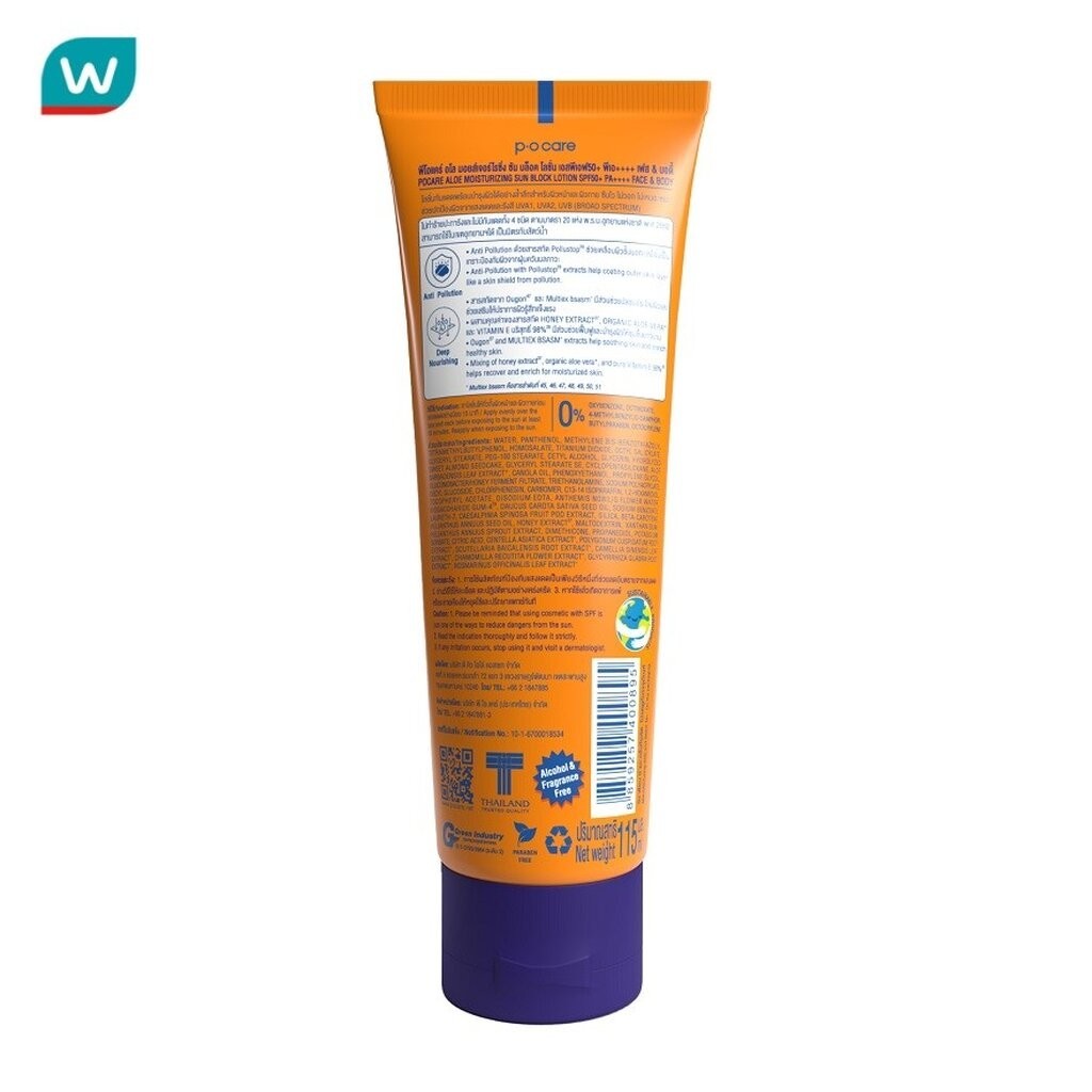 PO Care พีโอ แคร์อโล มอยส์เจอร์ไรซิ่ง ซัน บล็อค โลชั่น SPF50+ PA++++ เฟส แอนด์ บอดี้ 115 มล.