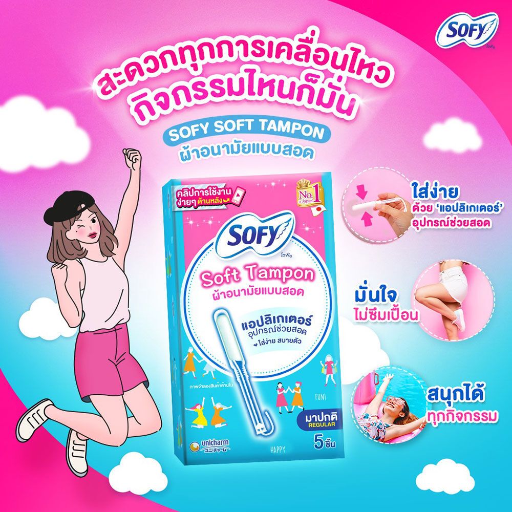 Sofy โซฟี ผ้าอนามัย แบบสอด ซอฟต์ แทมปอน แอปลิเกเตอร์ ใส่ง่าย สบายตัว 5 ชิ้น
