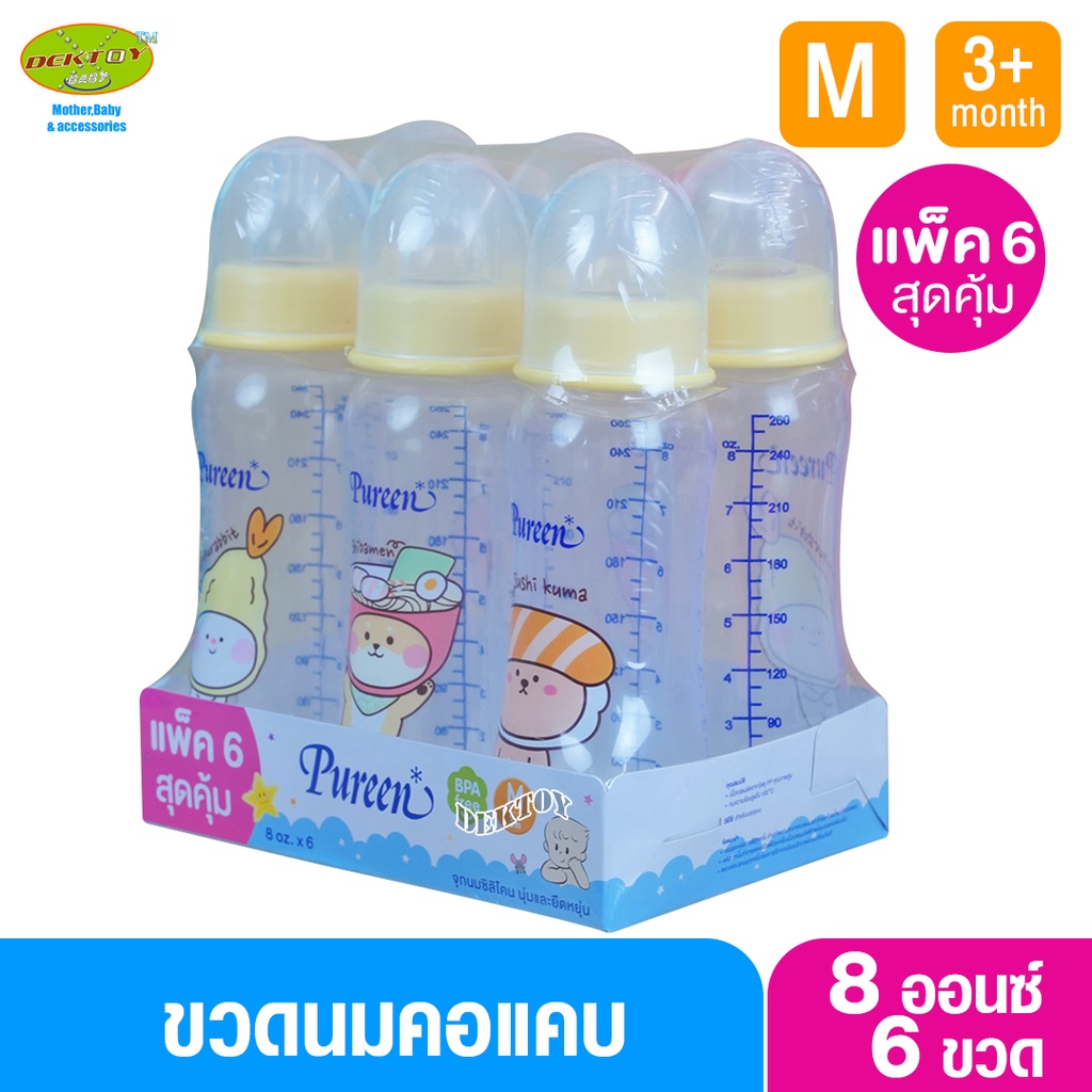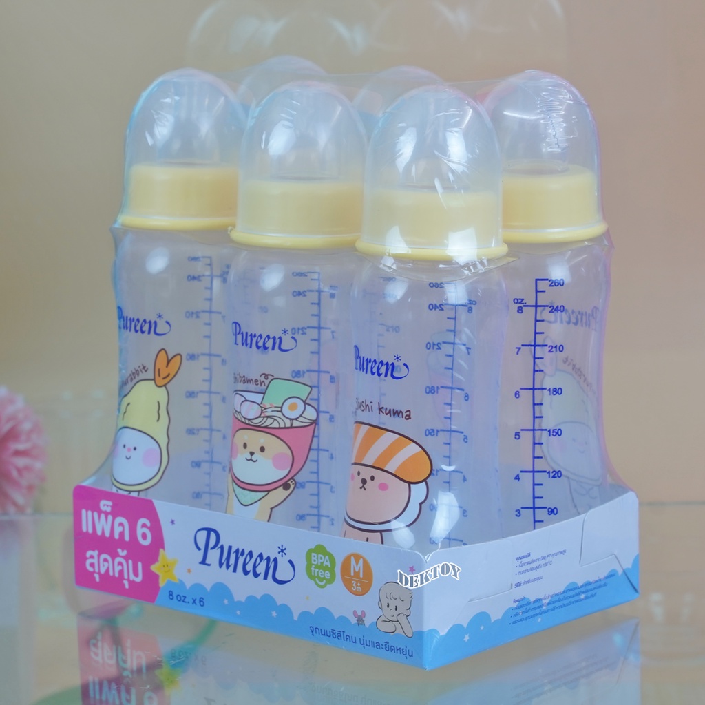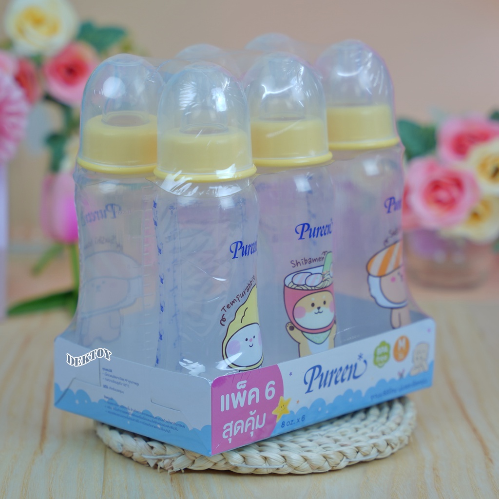 Pureen เพียวรีน ขวดนมเพียวรีน PP 8ออนซ์แพ็ค6ขวด ขาวขุ่น 34036