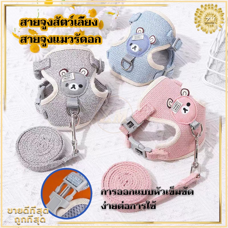 สายจูงสุนัขแฟชั่นรัดอก ปรับได้ ป้องกันไม่ให้หลุด นุ่มและระบายอากาศได้ดี มี 3 สีให้เลือก