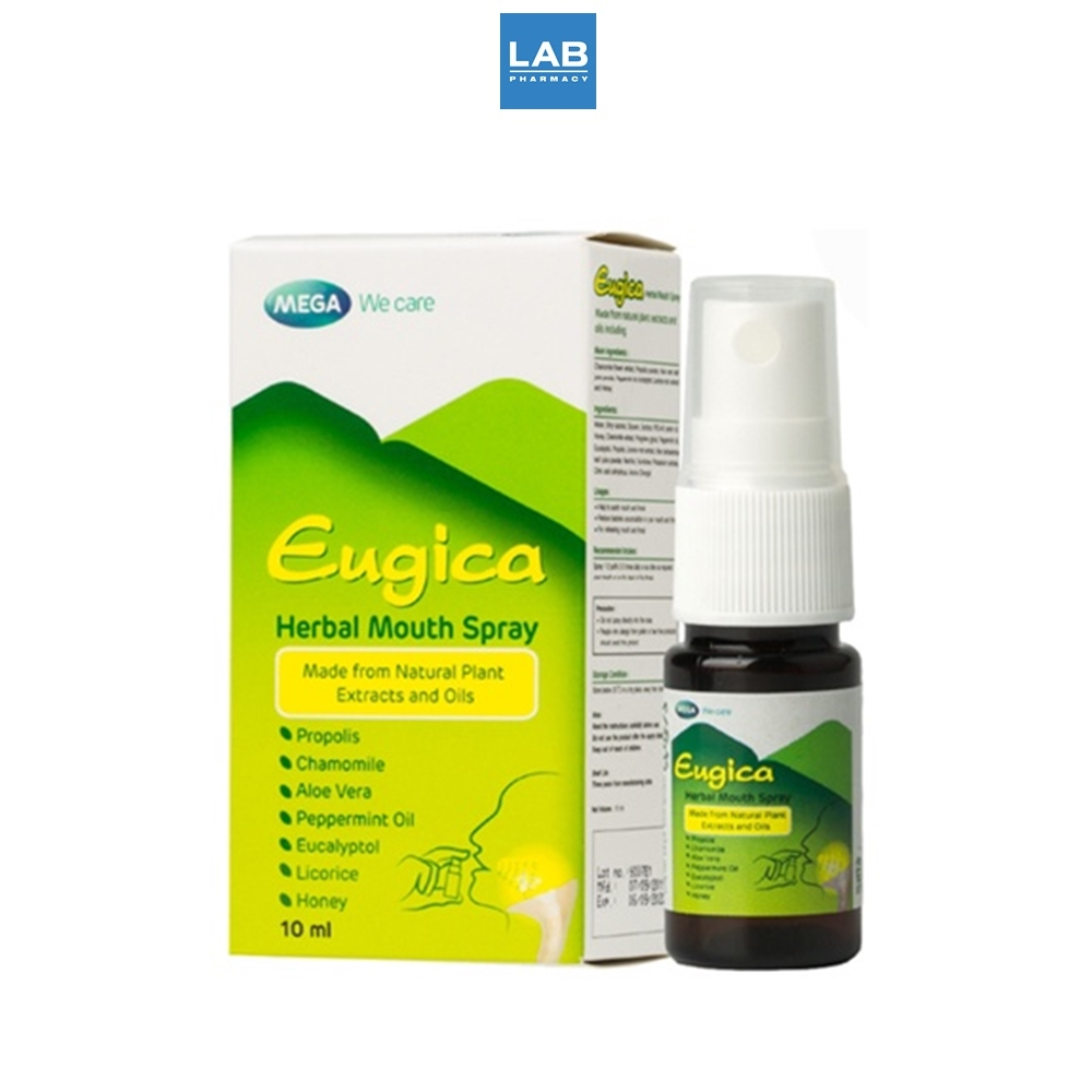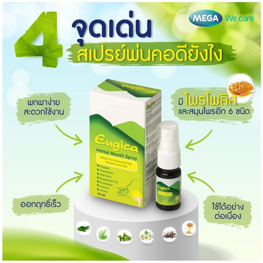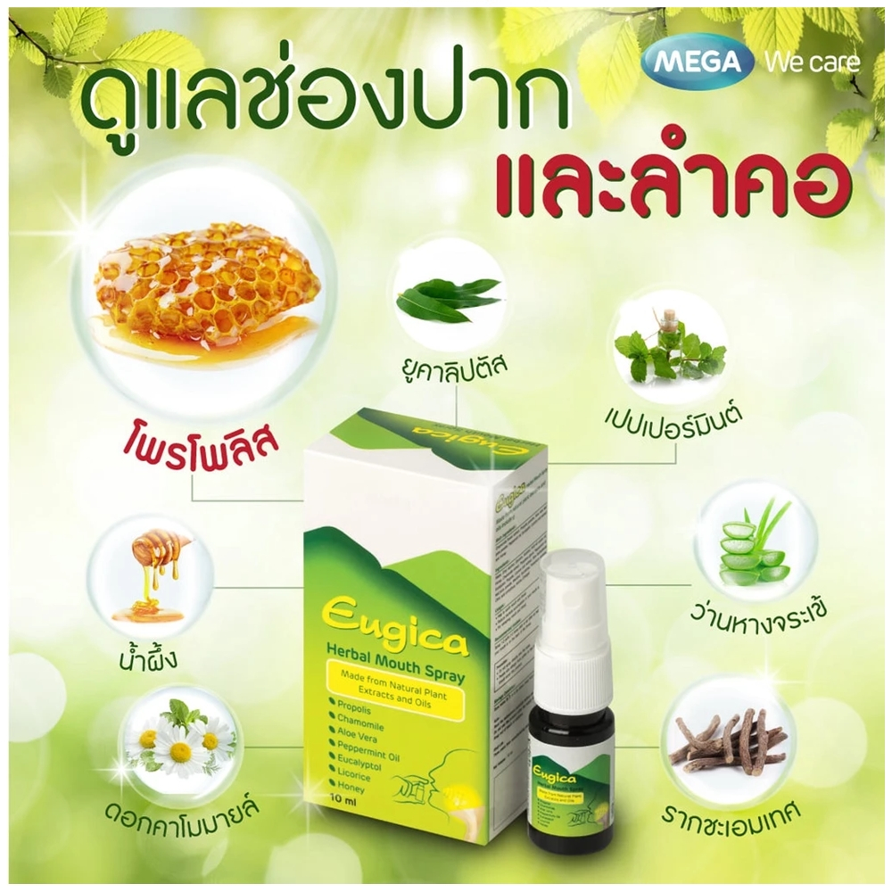 MEGA We Care Eugica Mouth Spray 10ml เมก้า ยูจิก้า เมาท์ สเปรย์ 10 มล. สเปรย์พ่นปากและลำคอ ช่วยบรรเทาอาการระคายเคือง