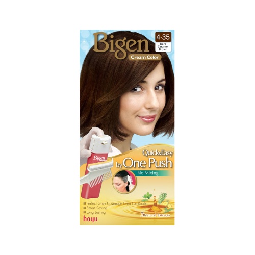 Bigen One Push Dark Caramel Hair Color Cream 4.35 บีเง็นครีมเปลี่ยนสีผมวันพุชน้ำตาลเข้มคาราเมล 4.35