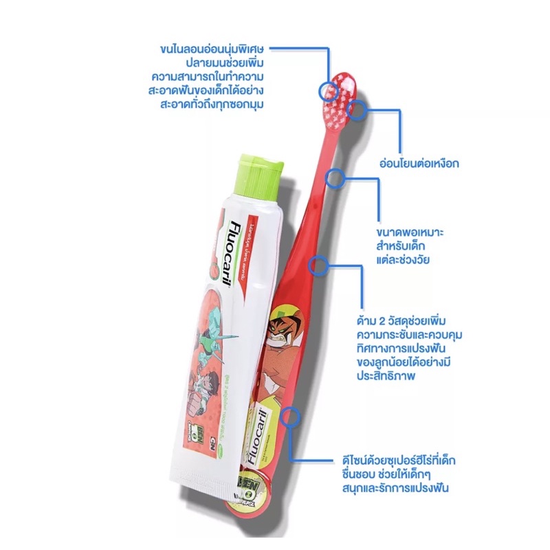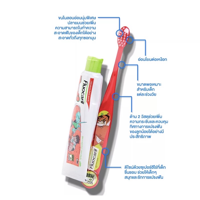 Fluocaril แปรงสีฟัน ฟลูโอคารีล ขนเรียวแหลม บอย 2-6ปี สูตร 2 ฟลูโอไรด์ พร้อมฟรี ยาสีฟัน 1 หลอด แพ็ค 1 ชุด