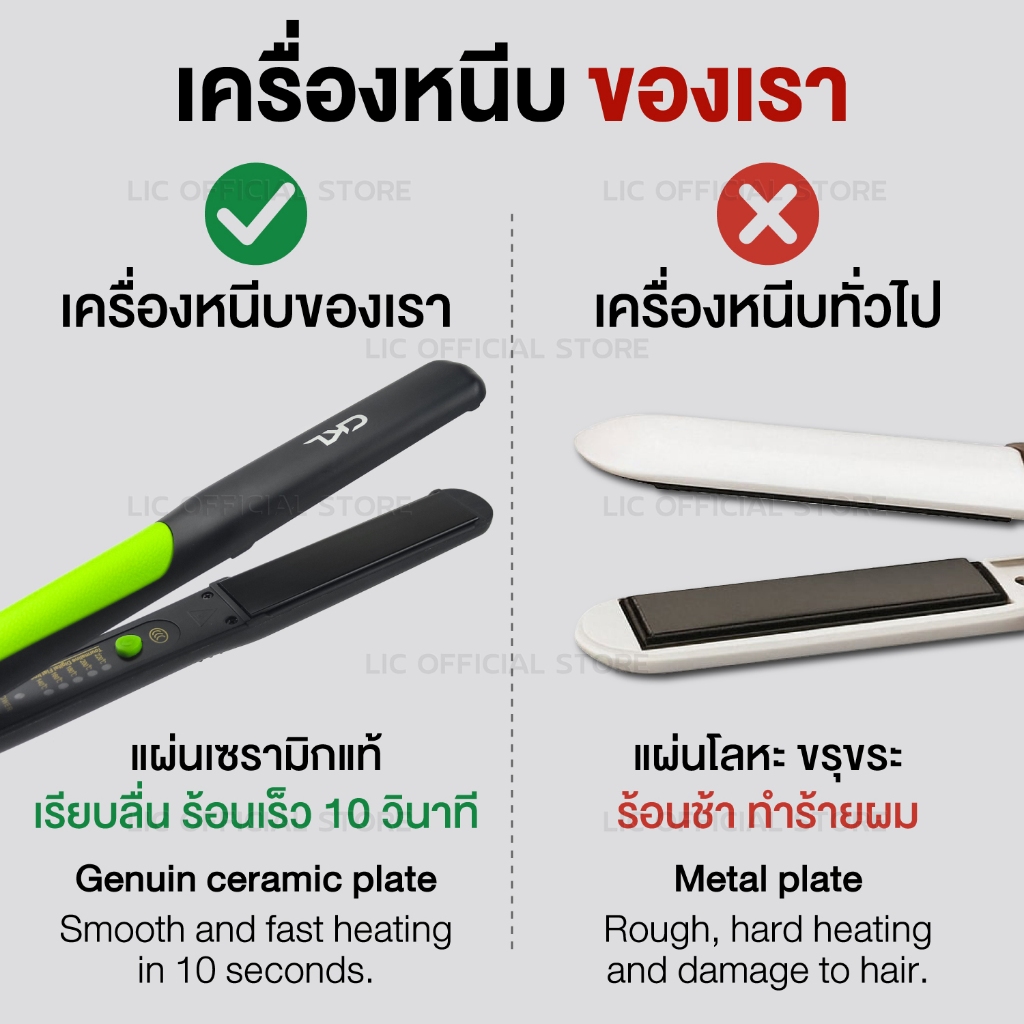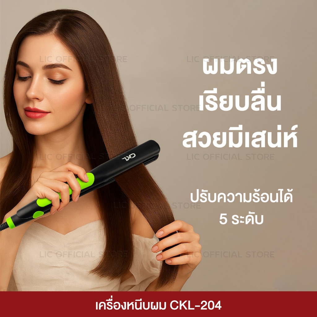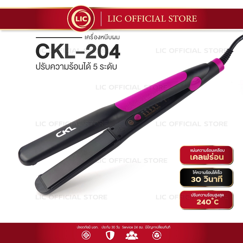LIC 🔥 เครื่องหนีบผม CKL 204 🔥 ที่หนีบผม เครื่องรีดผม แผ่นเซรามิค ปรับอุณหภูมิได้ 5ระดับ เครื่องหนีบผมช่าง CKL-204