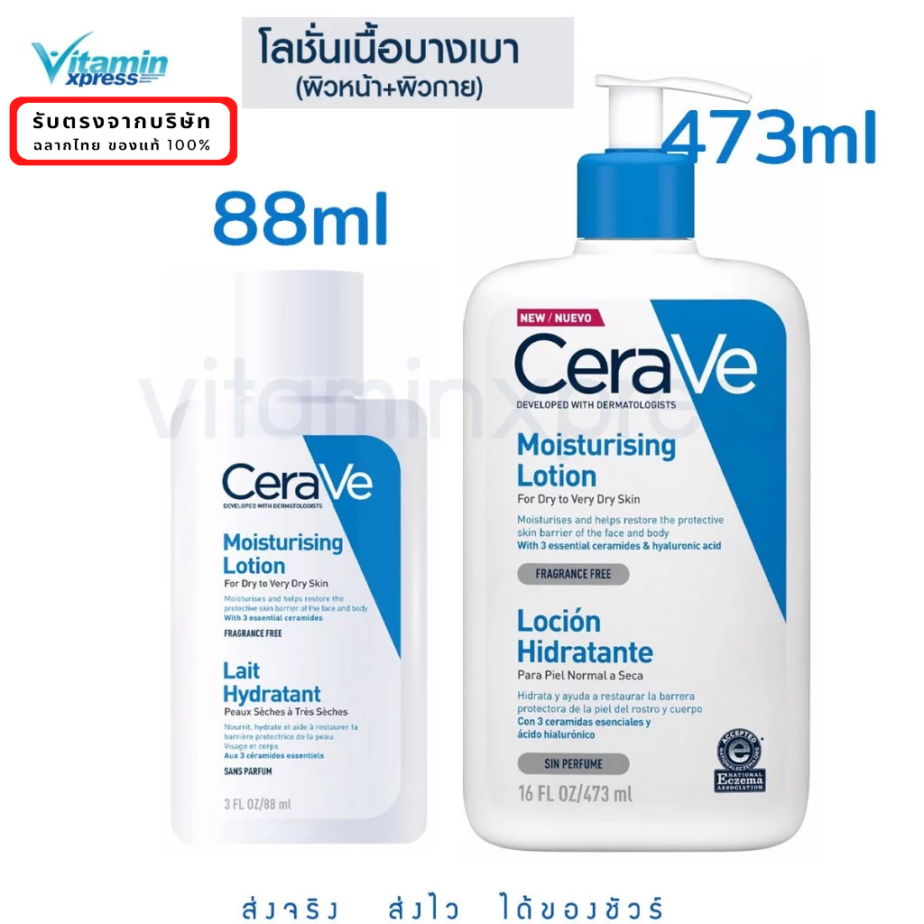 CERAVE Moisturising Lotion โลชั่น ผิวแห้ง-แห้งมาก เนื้อบางเบา 88 มล / 473มล เซราวี โลชั่น บำรุงผิว 88ml 473ml