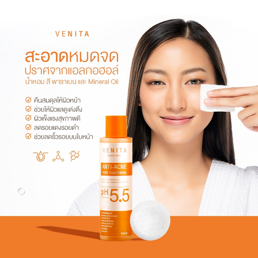 [เอสเซนส์โทนเนอร์ลดสิว] VENITA ANTI-ACNE PORE TIGHTENING ESSENCE TONER 150 ML
