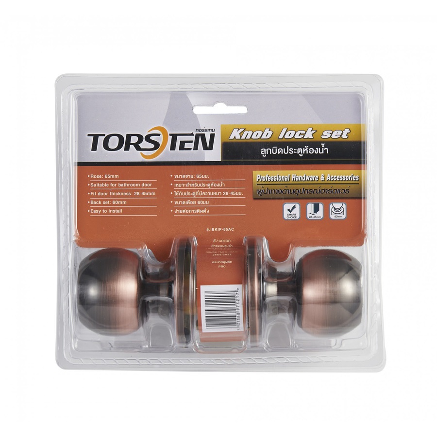 GlobalHouse TORSTEN ลูกบิดประตูห้องน้ำ จานเล็ก สเตนเลส-304 รุ่น 587-AC-BK สีทองแดงรมดำ (จาน 65 มม.) สินค้าของแท้คุณภาพดี